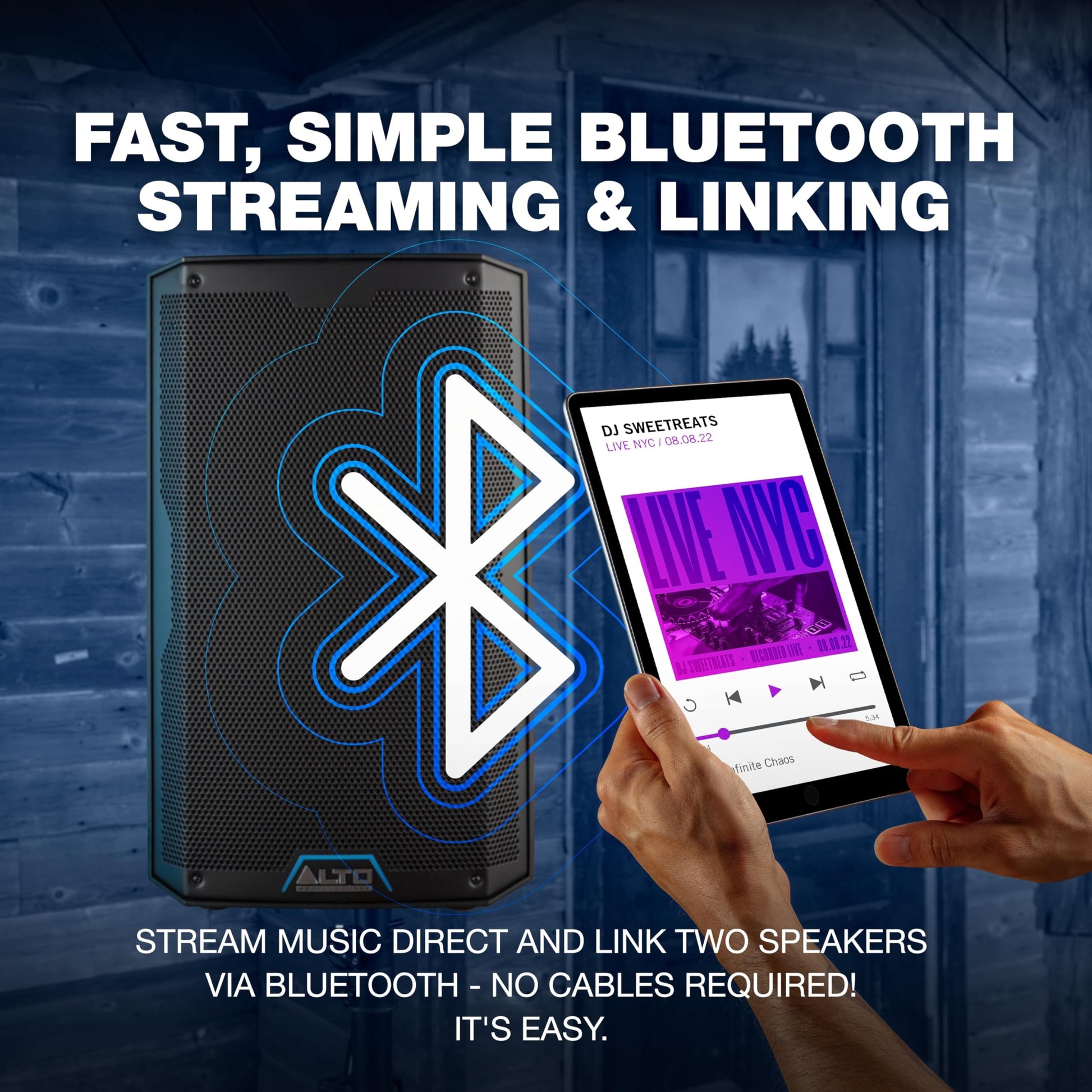 Details: Introducing the Alto TS408, a 2000W powered speaker from the TS4 Series. TS4 builds upon the legacy of our best-selling TrueSonic speakers, bringing powerful, clear sound and next-gen Bluetooth functionality including streaming, control (via the FREE Alto App), and True Stereo Wireless linking.