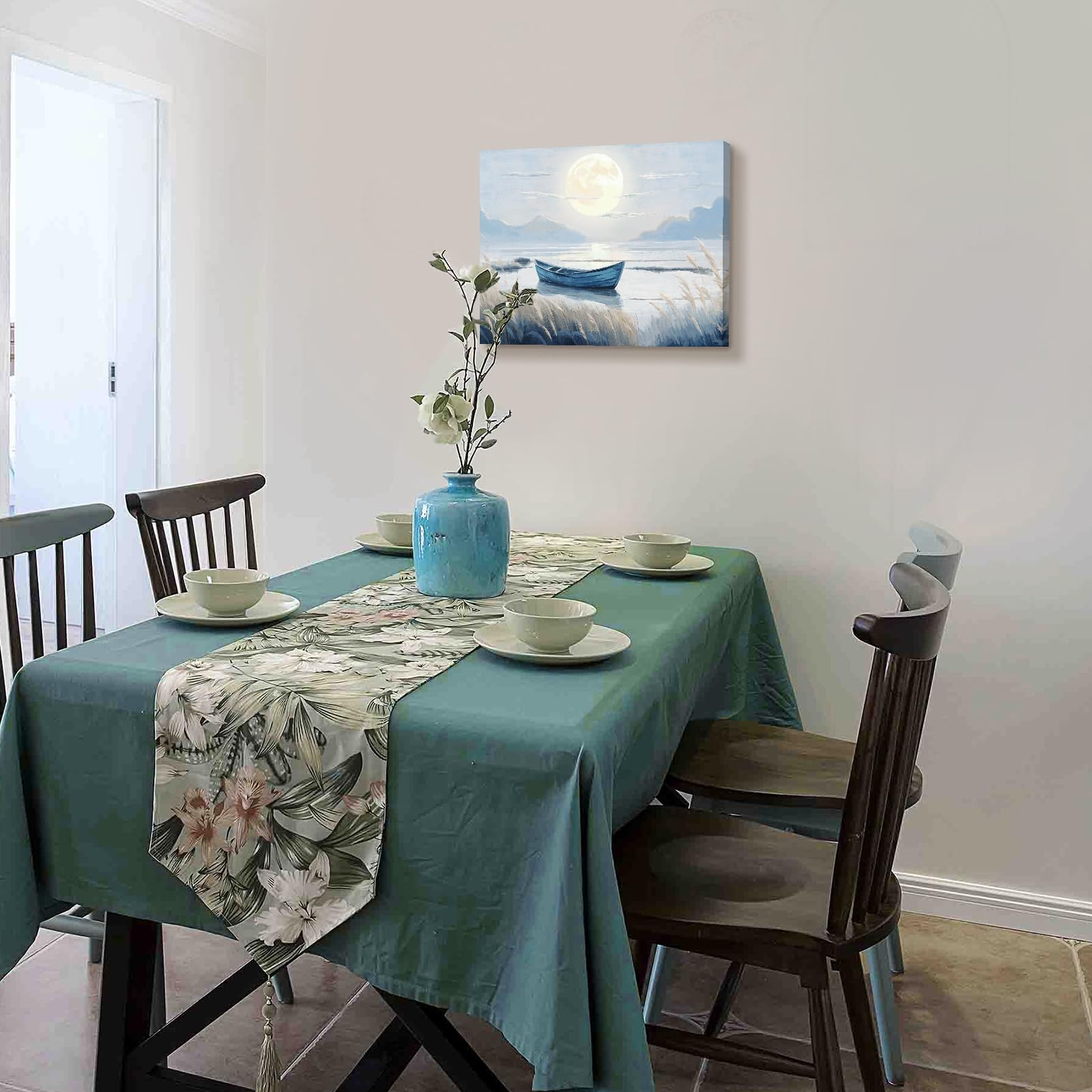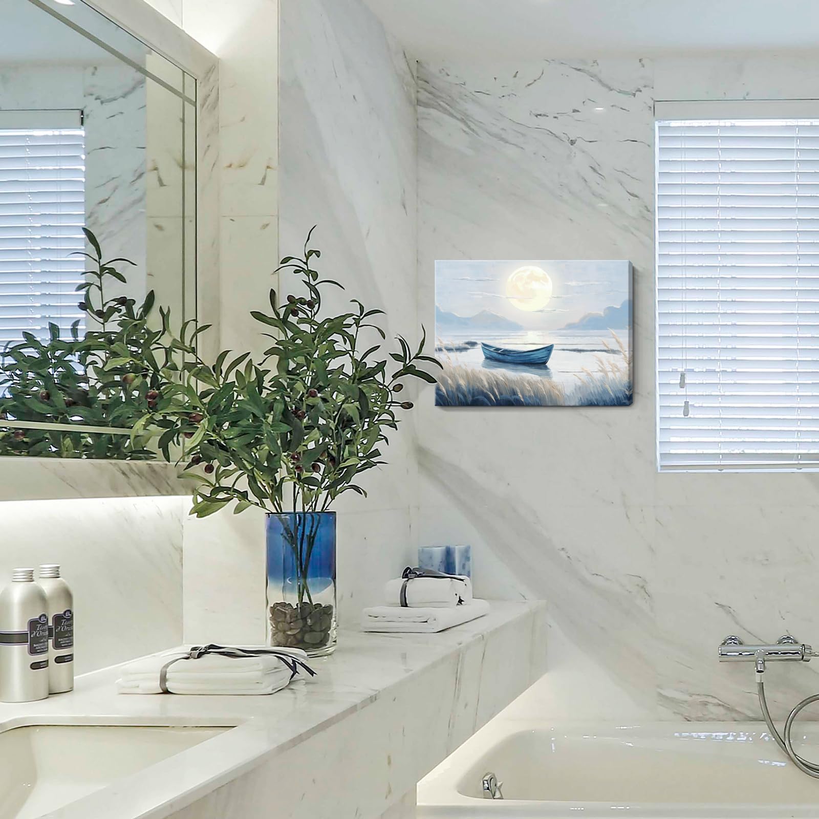 • Tranquil Wall Art for Every Space. Transform your walls with this stunning coastal canvas wall art featuring a peaceful moonlit lake, glowing moon, and a serene boat. Perfect for adding nature-inspired elegance to your bathroom, kitchen, bedroom, or office décor