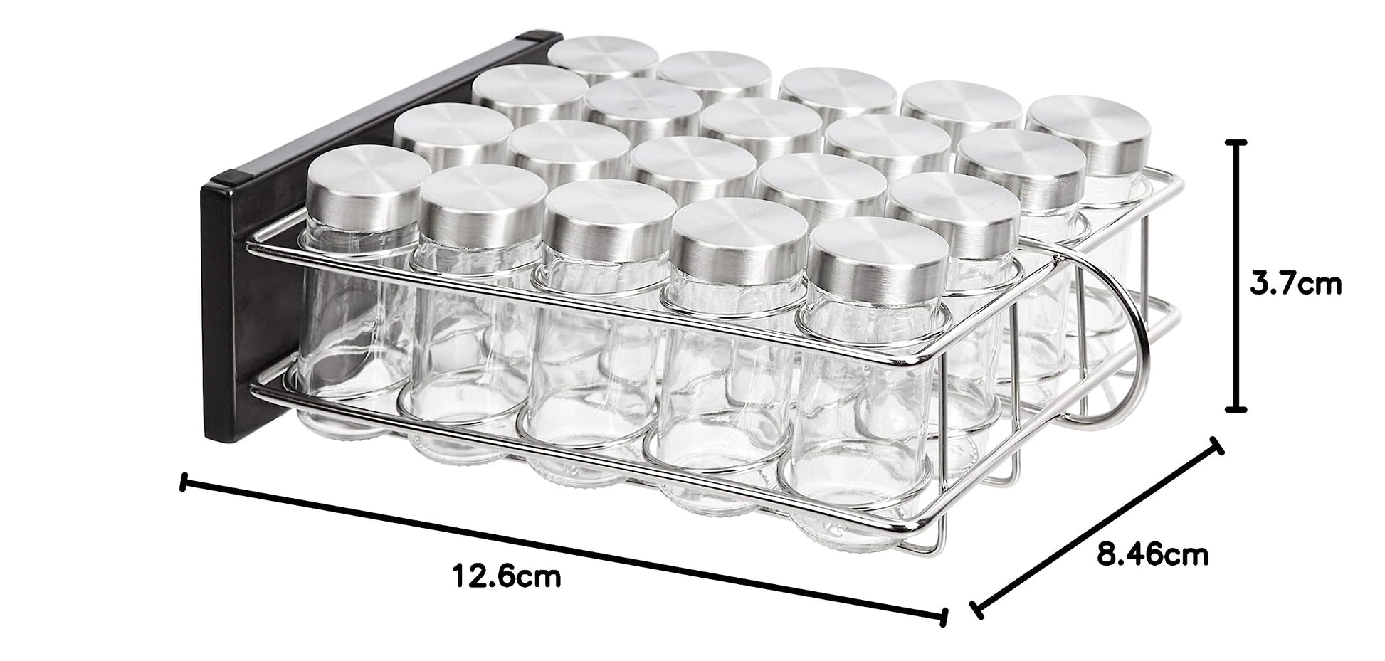 • COMPLETE SPICE ORGANIZATION: These spice racks include silver screw-on tops for the jars so your spices are well stored and easily identifiable