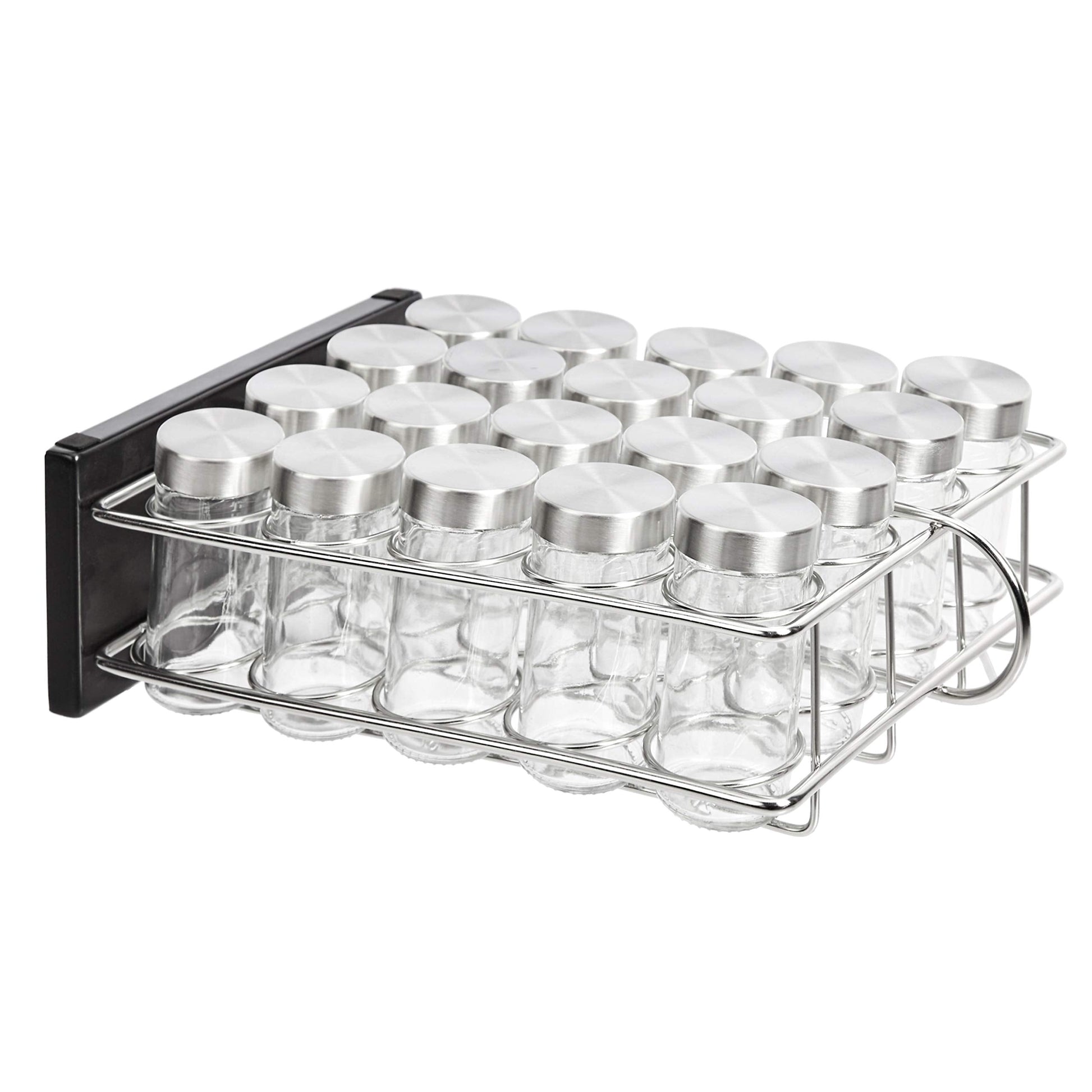 • CONVENIENT STORAGE SOLUTION: The spice shelf features 20 storage slots with clear glass spice jars with lids, making it easy to see and access your spices