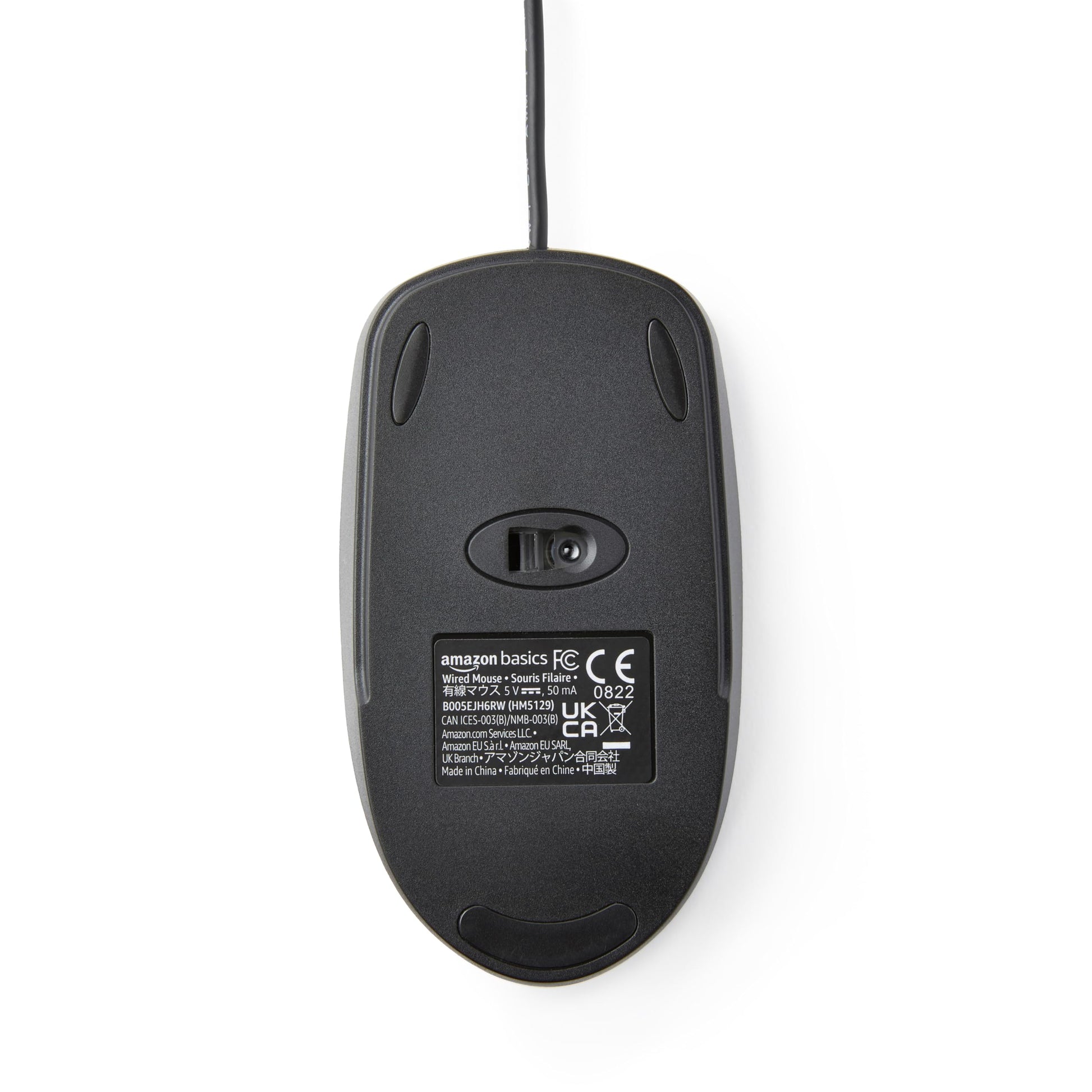 Amazon Basics 3-Button USB Wired Mouse with Scrolling and Tracking - Standard, Black