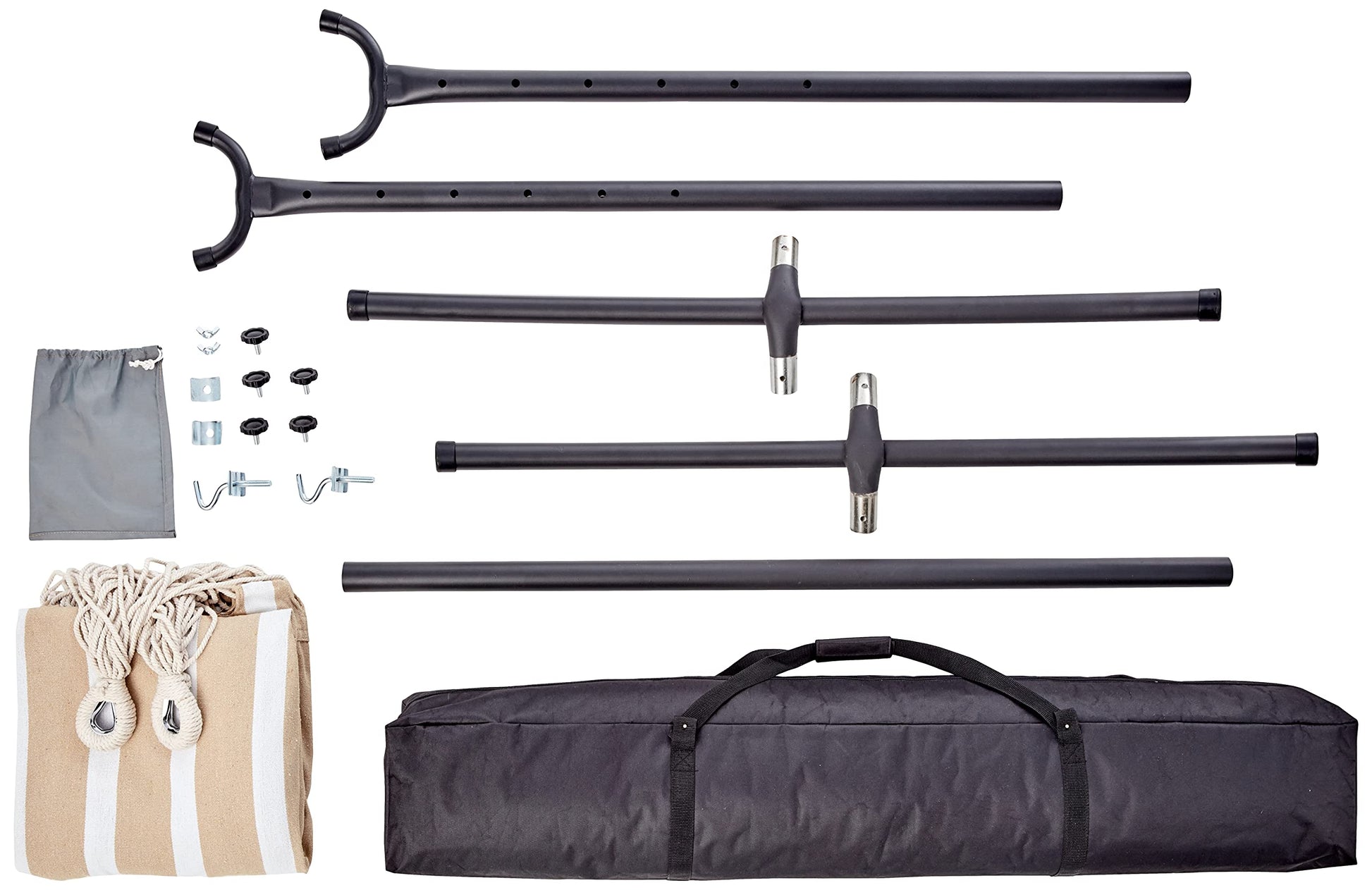 Amazon Basics Double Hammock with 9-Foot Space Saving Steel Stand and Carrying Case, Beige Stripe with Lace