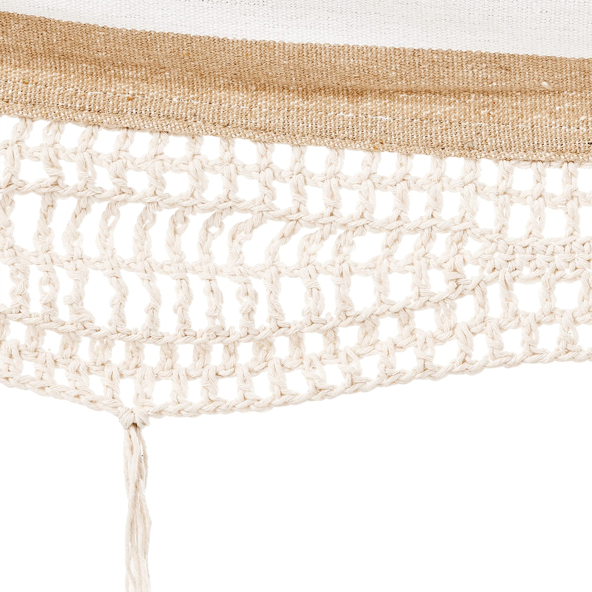• Double hammock made of comfortable cotton & polyester with a Beige Stripe with Lace design, a steel stand, and a carrying case for the hammock