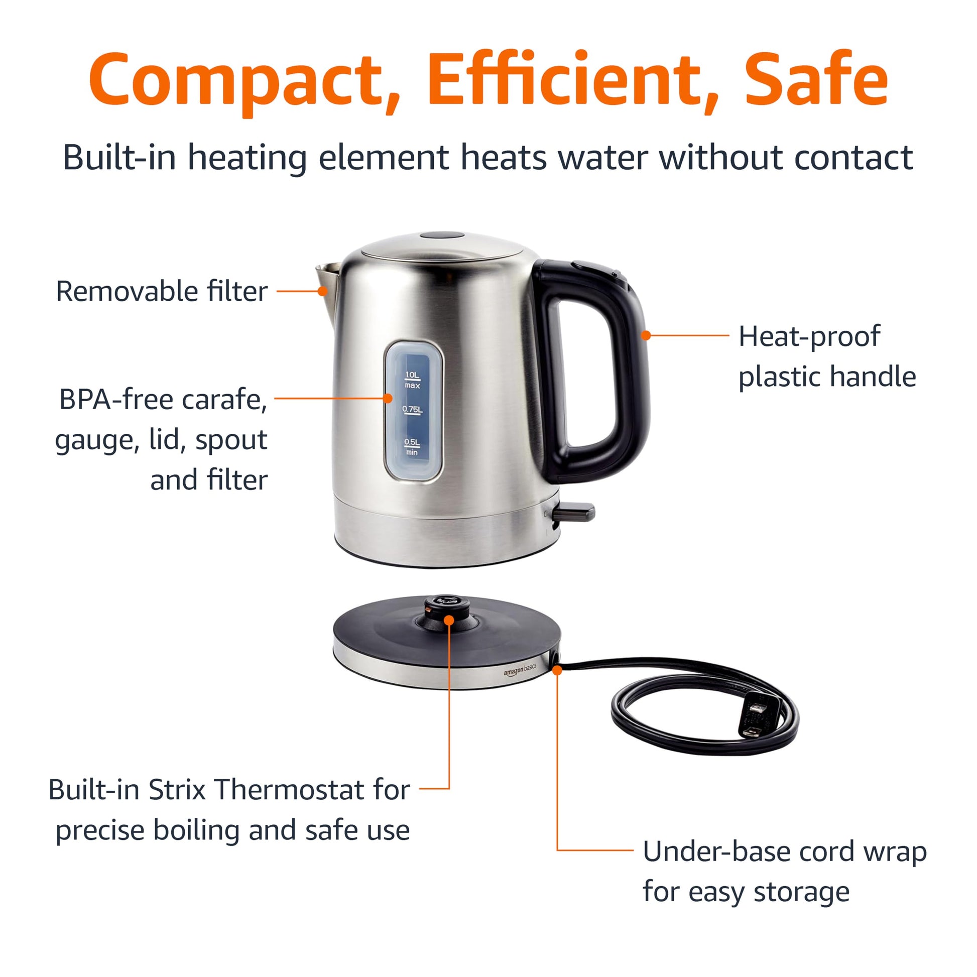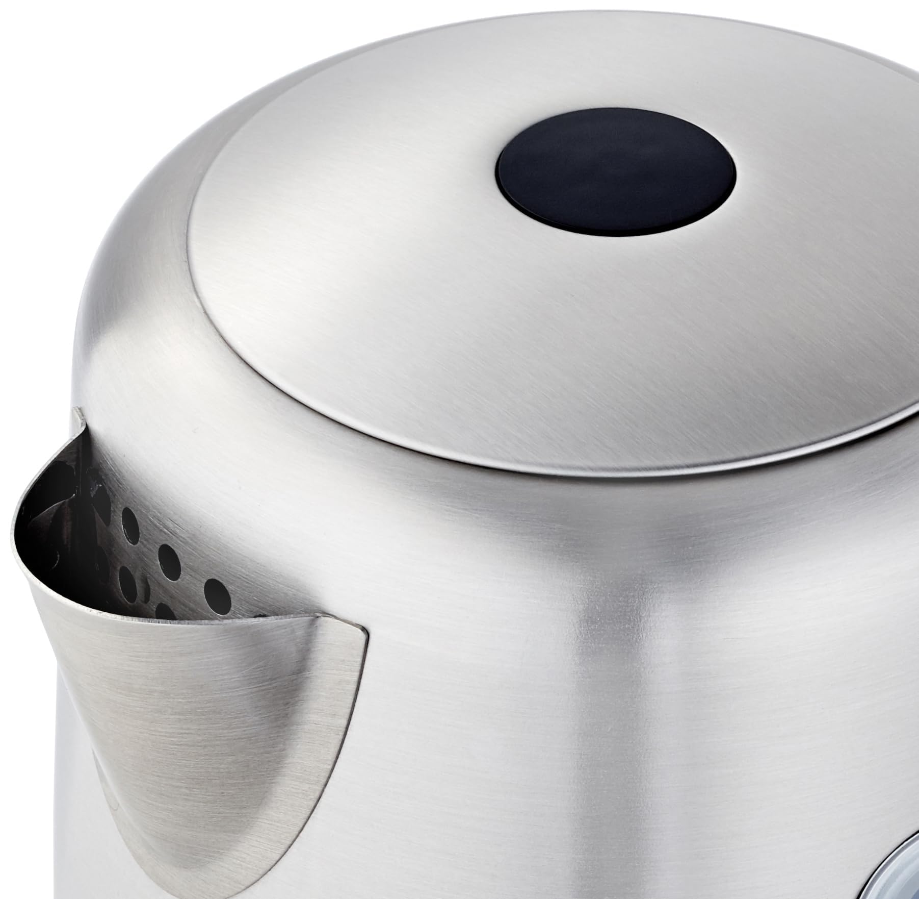 Amazon Basics Electric Stainless Steel Kettle for Tea and Coffee, BPA-Free, Fast Boiling, Auto Shut-Off, 1.1 Quarts, 1500W, Black and Silver