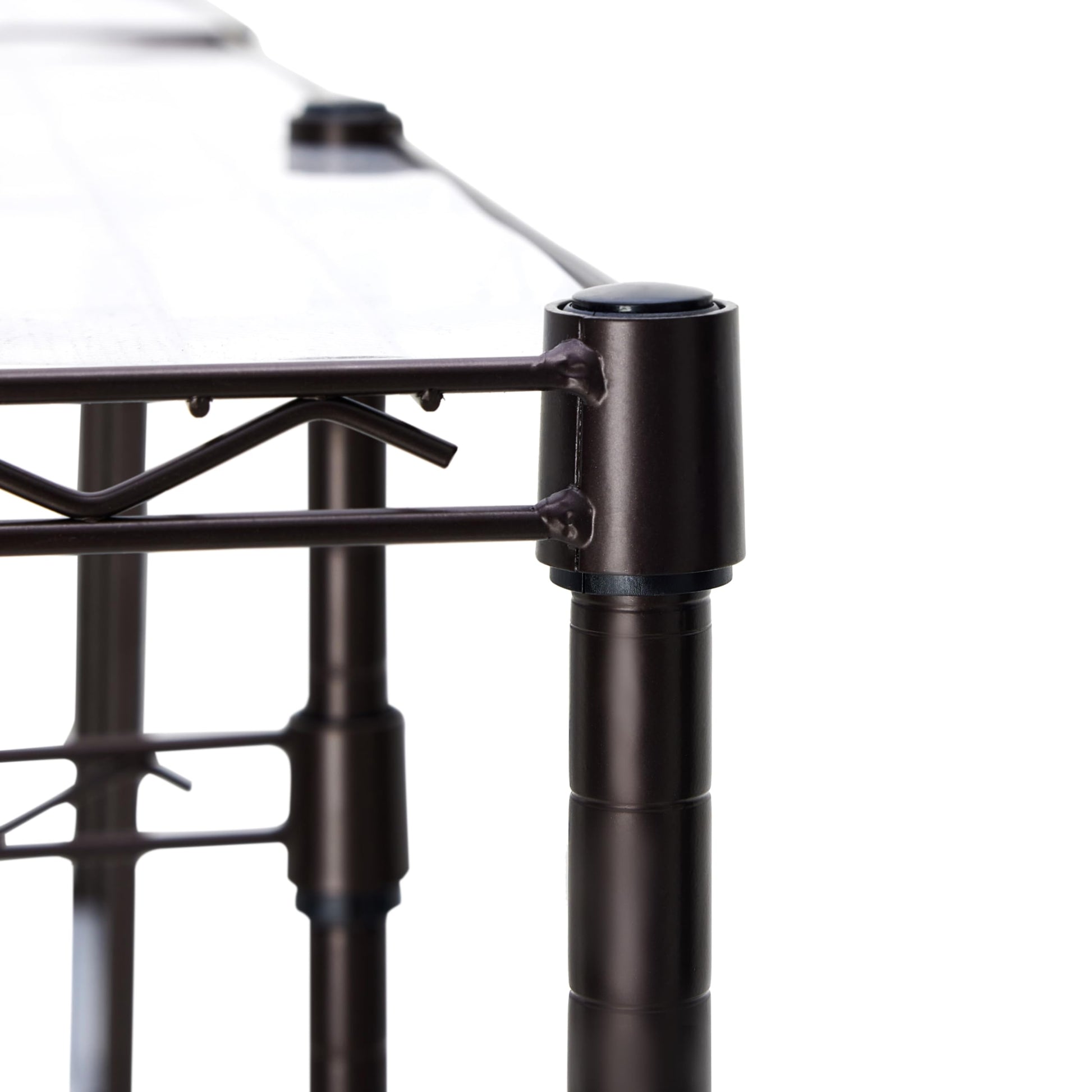 • Made of durable steel wire and plastic slip sleeves; sleek black finish; 4 extra-wide leveling feet for added stability