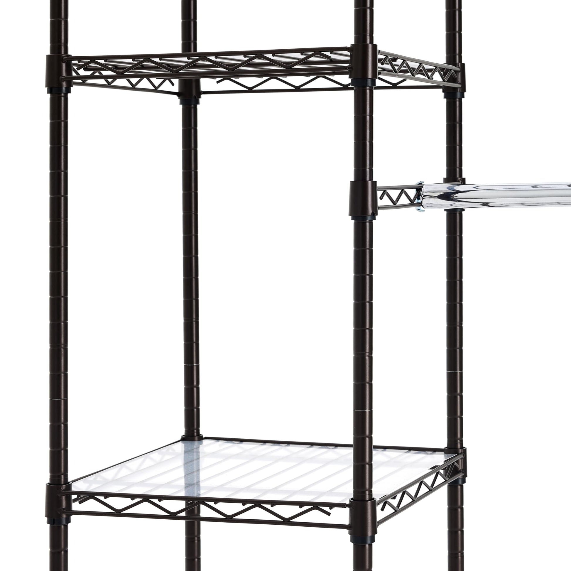 Amazon Basics Expandable Metal Hanging Storage Organizer Rack Wardrobe with Shelves, 14'-63' x 58'-72', Bronze