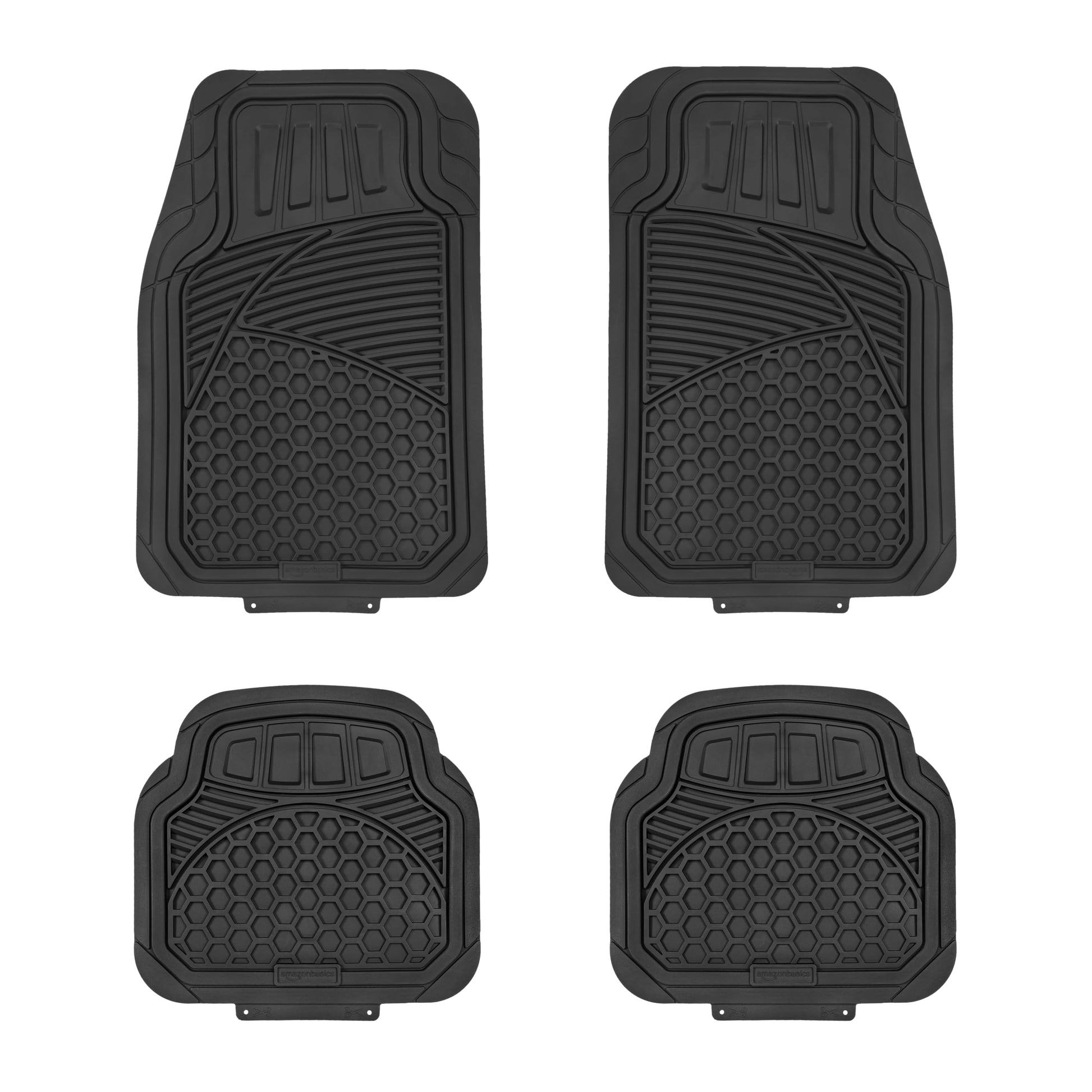 • The trimmable Universal 4-Piece PVC floor mats are designed to fit for most automotive cars, SUV sedans, and Trucks. The trim to fit feature allows you to cut to size and customize the floor mats to your vehicle's specifications