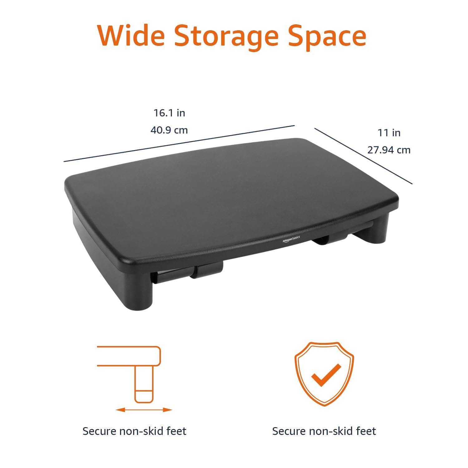 Amazon Basics Height Adjustable Rectangular Computer Monitor Riser Desk Stand with Storage for Reduced Neck Strain - Fits Monitors, Laptops Up to 22lbs, Black
