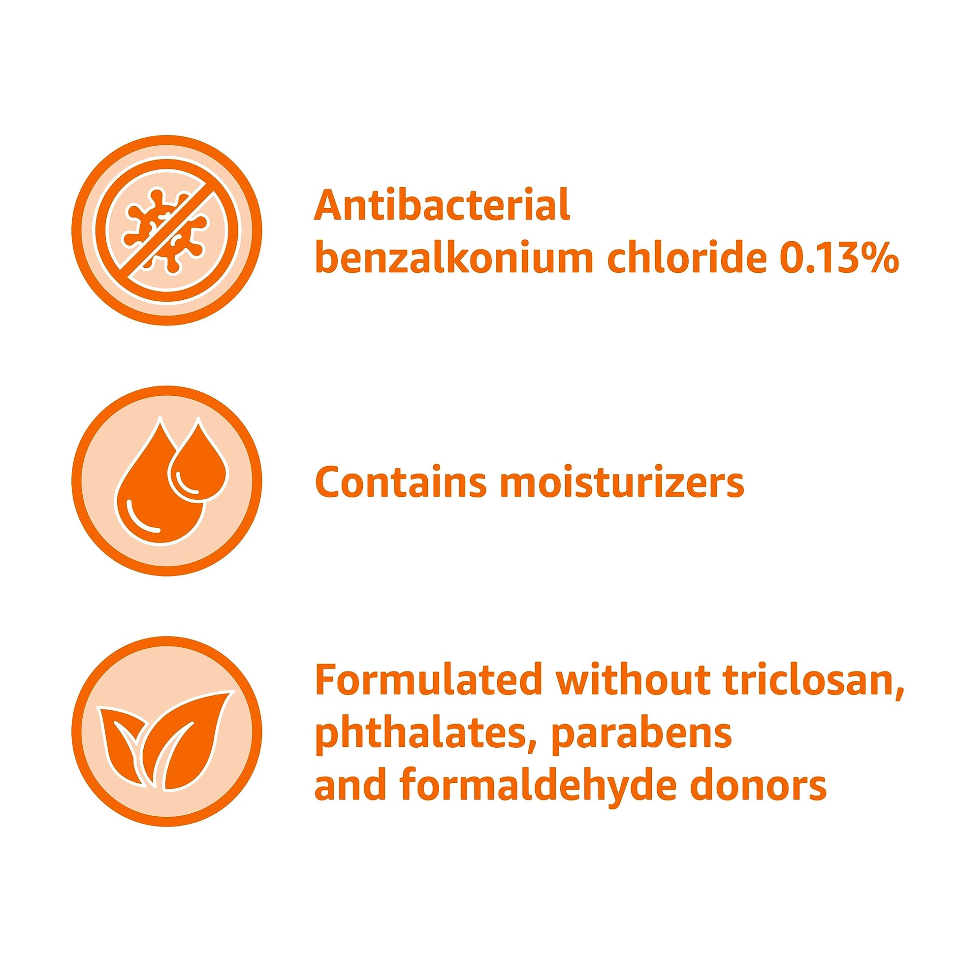 Details: Amazon Basics Antibacterial Liquid Hand Soap Refill, Light Moisturizing, Triclosan-Free.