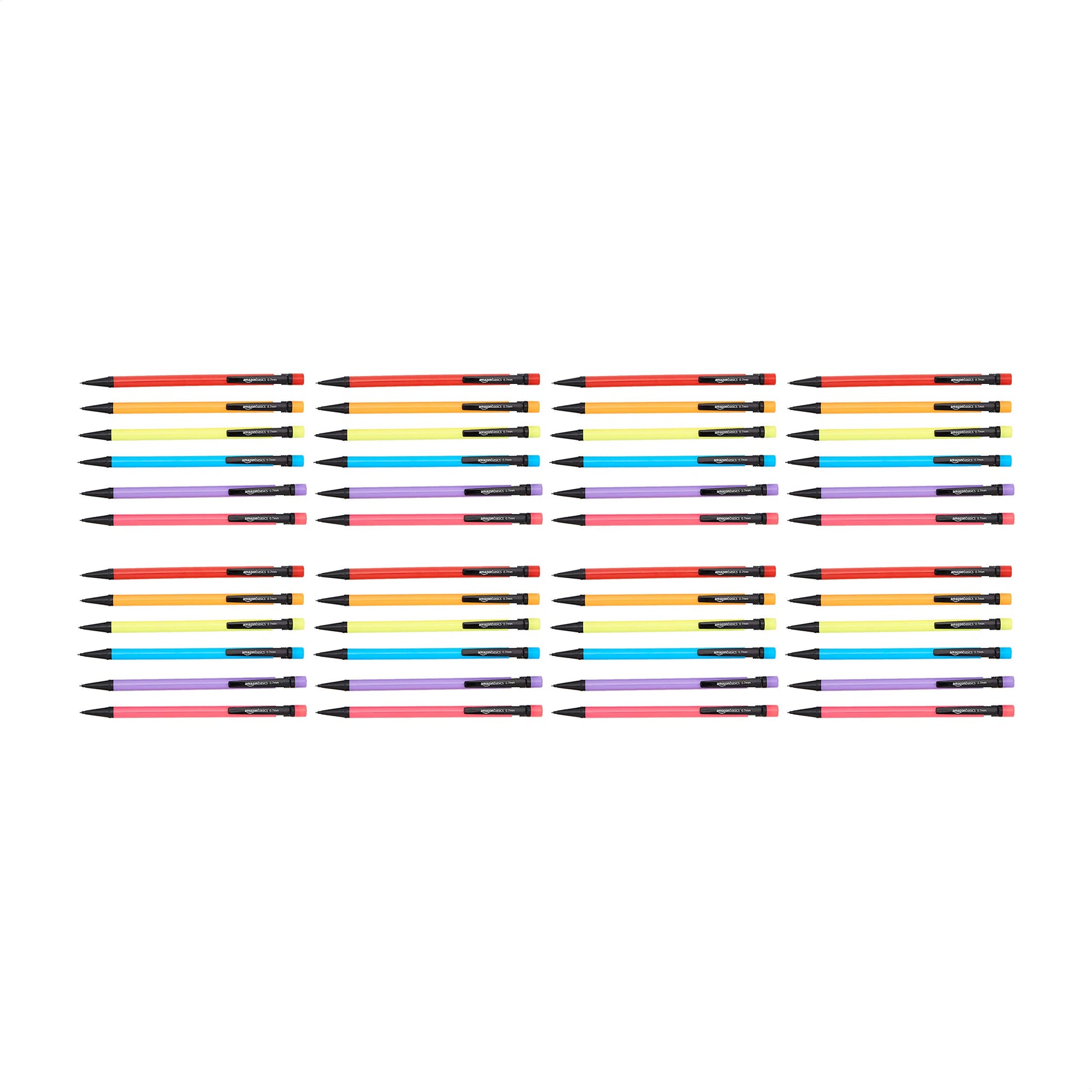 Amazon Basics Mechanical Pencils 0.7mm For Writing, Drawing, Bulk Office and School Supplies, Multicolor, 48-Pack