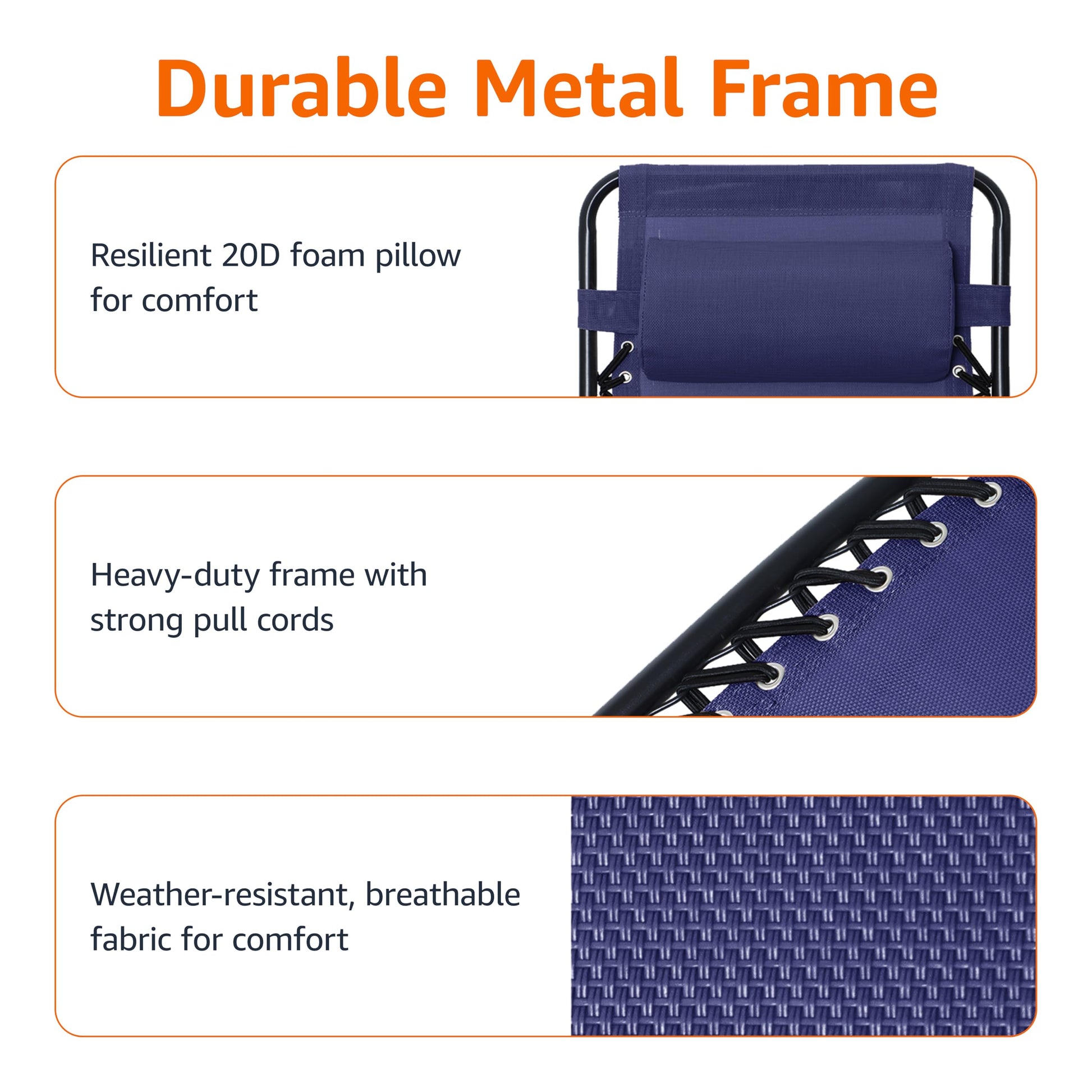 Amazon Basics Textilene Outdoor Adjustable Zero Gravity Folding Reclining Lounge Chair with Side table and Pillow - Pack of 2, Blue