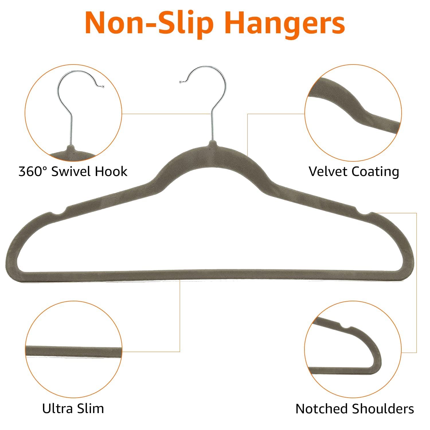 Amazon Basics Slim, Velvet, Non-Slip Clothes Suit Hangers, Grey/Silver - Pack of 50
