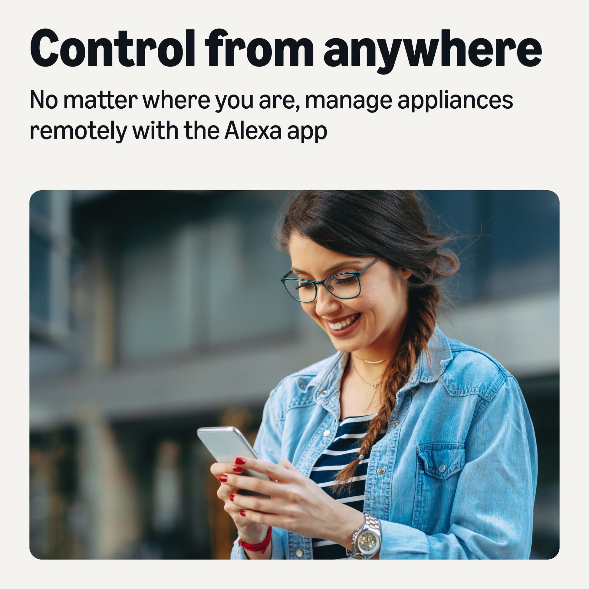 • CONTROL FROM ANYWHERE: Schedule plugged-in appliances like lights or fans to turn on/off automatically, or control them remotely via the Alexa app when you’re away