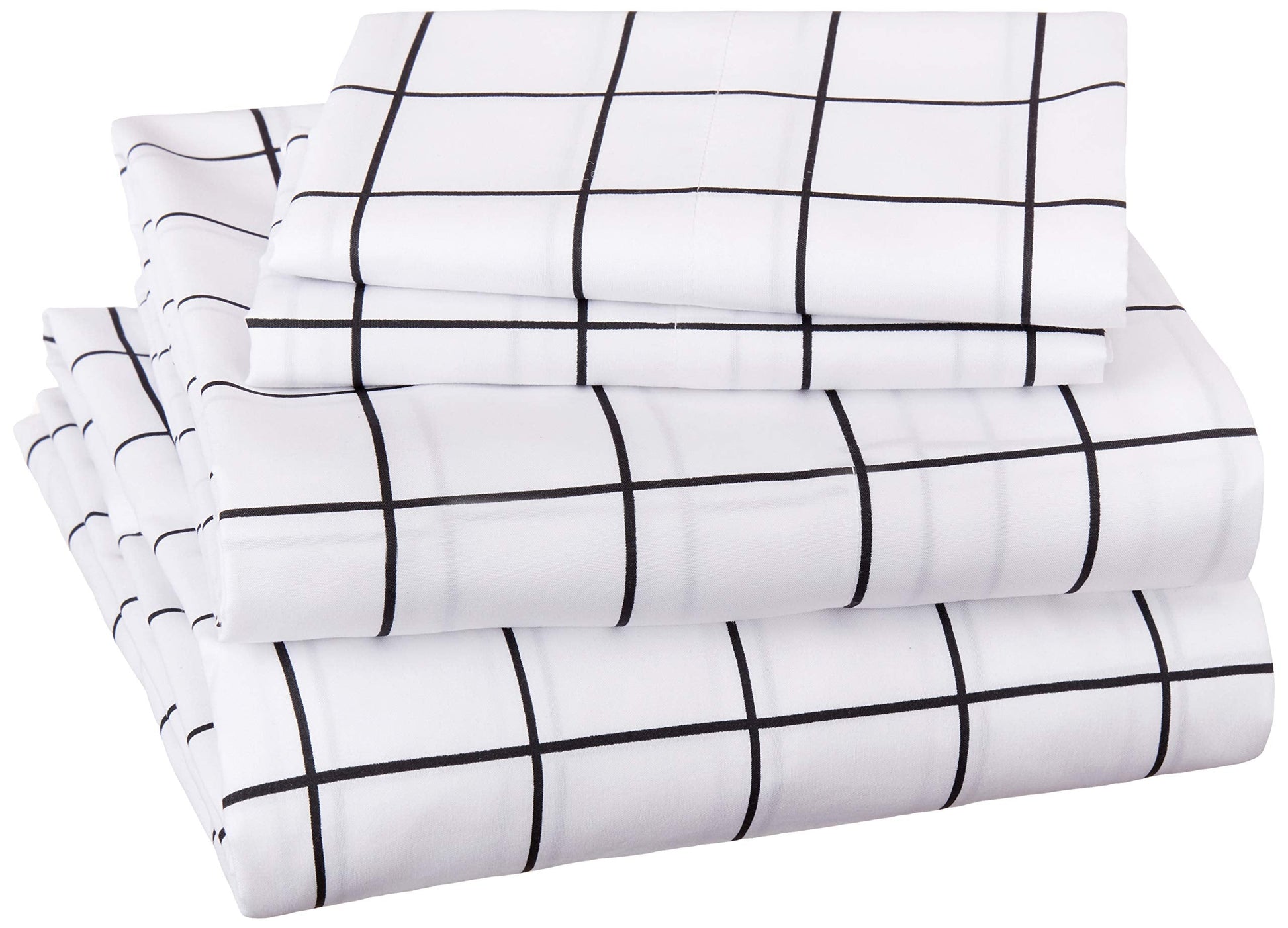 Amazon Basics Soft Microfiber Sheet Set with Elastic Pockets - Full, Black Grid