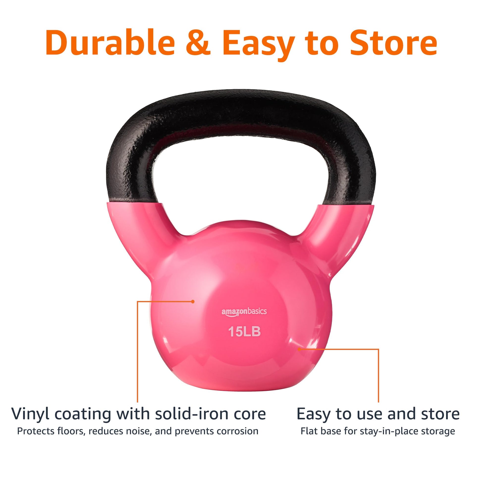 Amazon Basics Vinyl Kettlebell, 15 pound, Pink