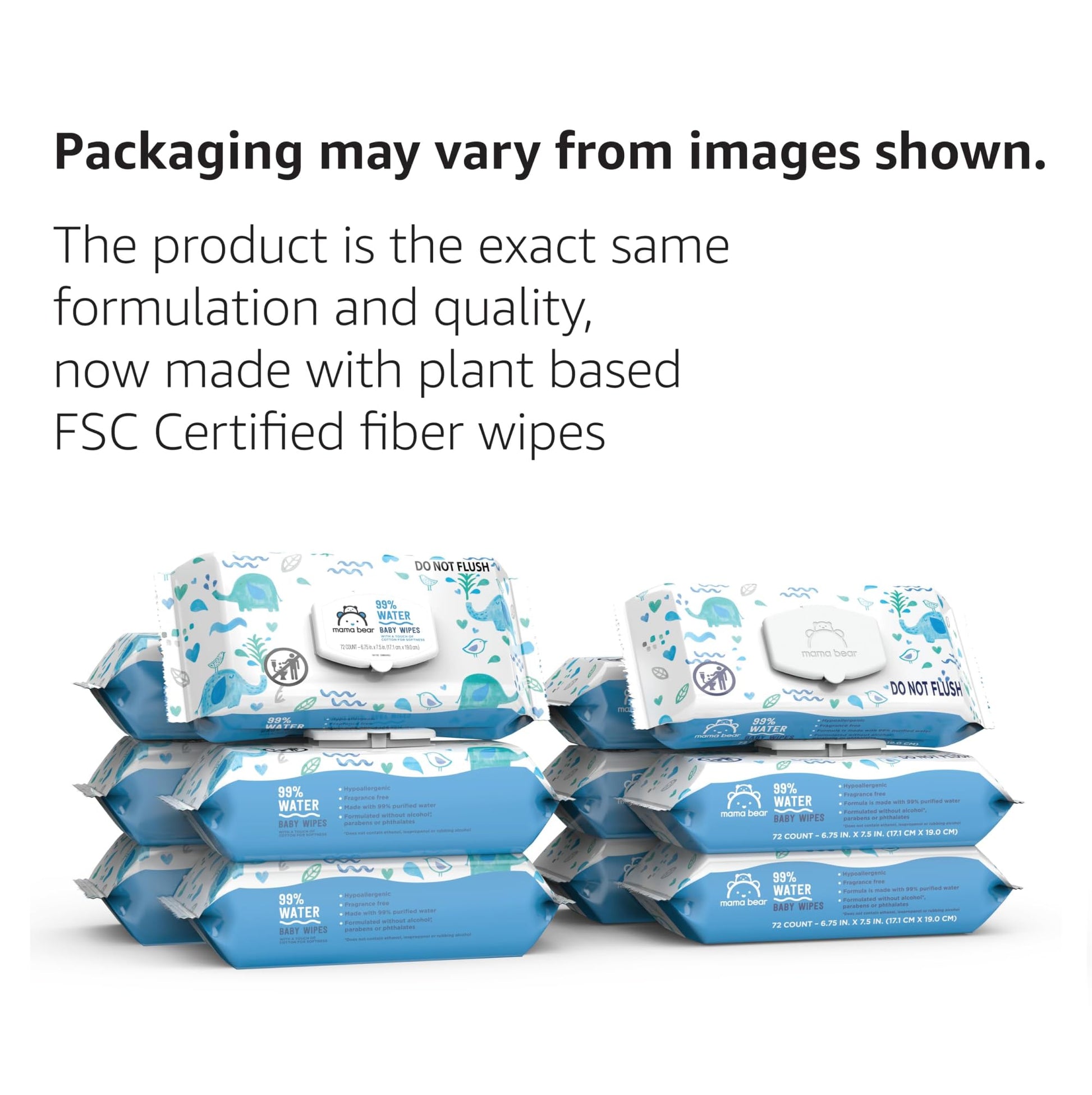 Amazon Brand - Mama Bear 99% Water Based Baby Wipes, Hypoallergenic for Sensitive Skin, Fragrance Free, 432 Count (6 Packs of 72)