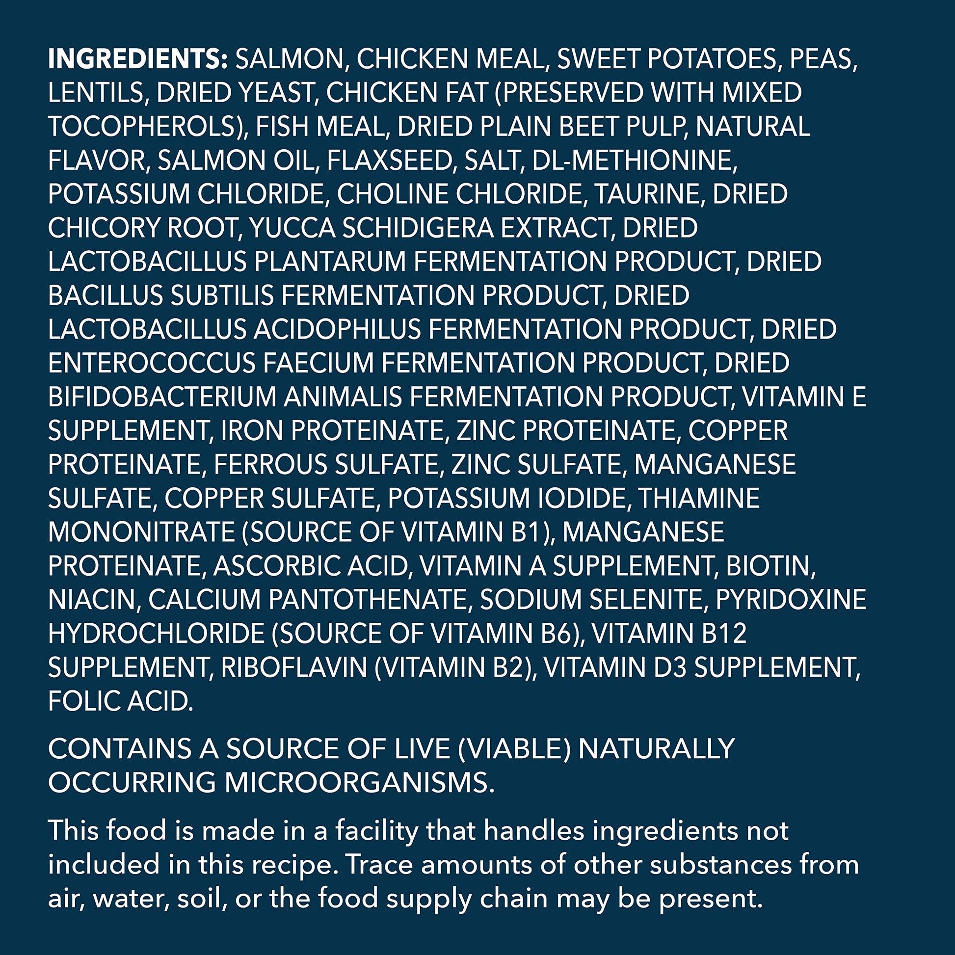 • Sustainably-raised Salmon is the #1 ingredient; protein helps keep your dog at his bounding best
