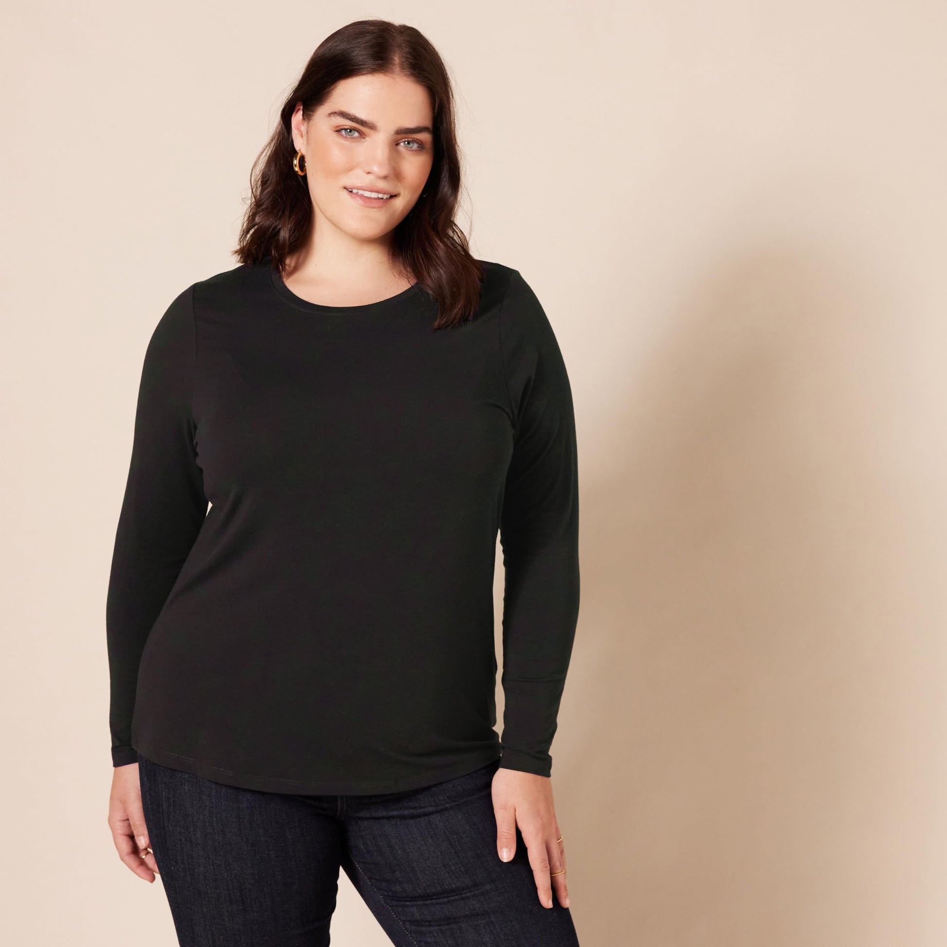 Amazon Essentials Women's Regular-Fit Long-Sleeve Crewneck T-Shirt (Available in Plus Size), Black, X-Small