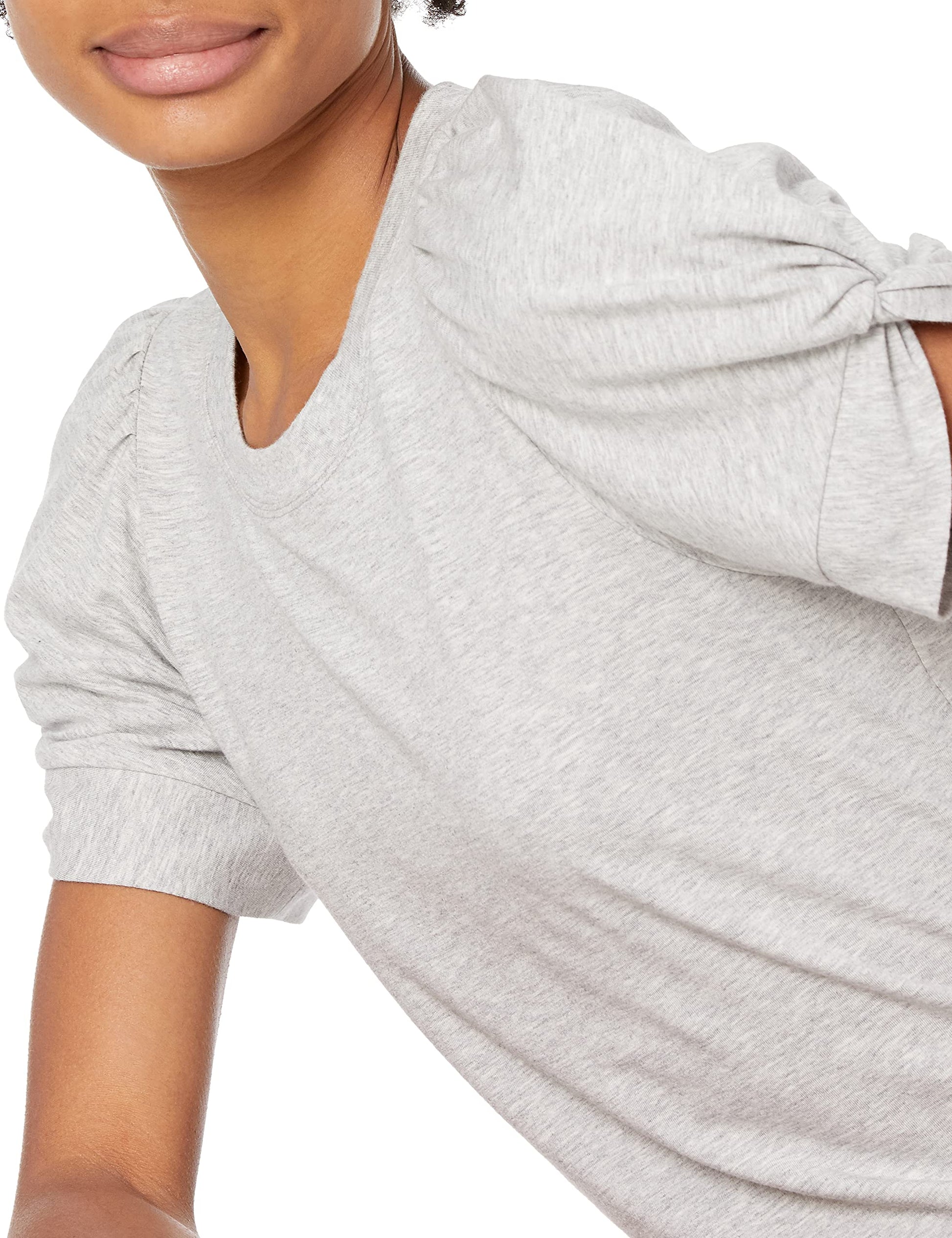 DETAILS: Features a classic crew neck and beautifully draped puff sleeves with an intriguing twist