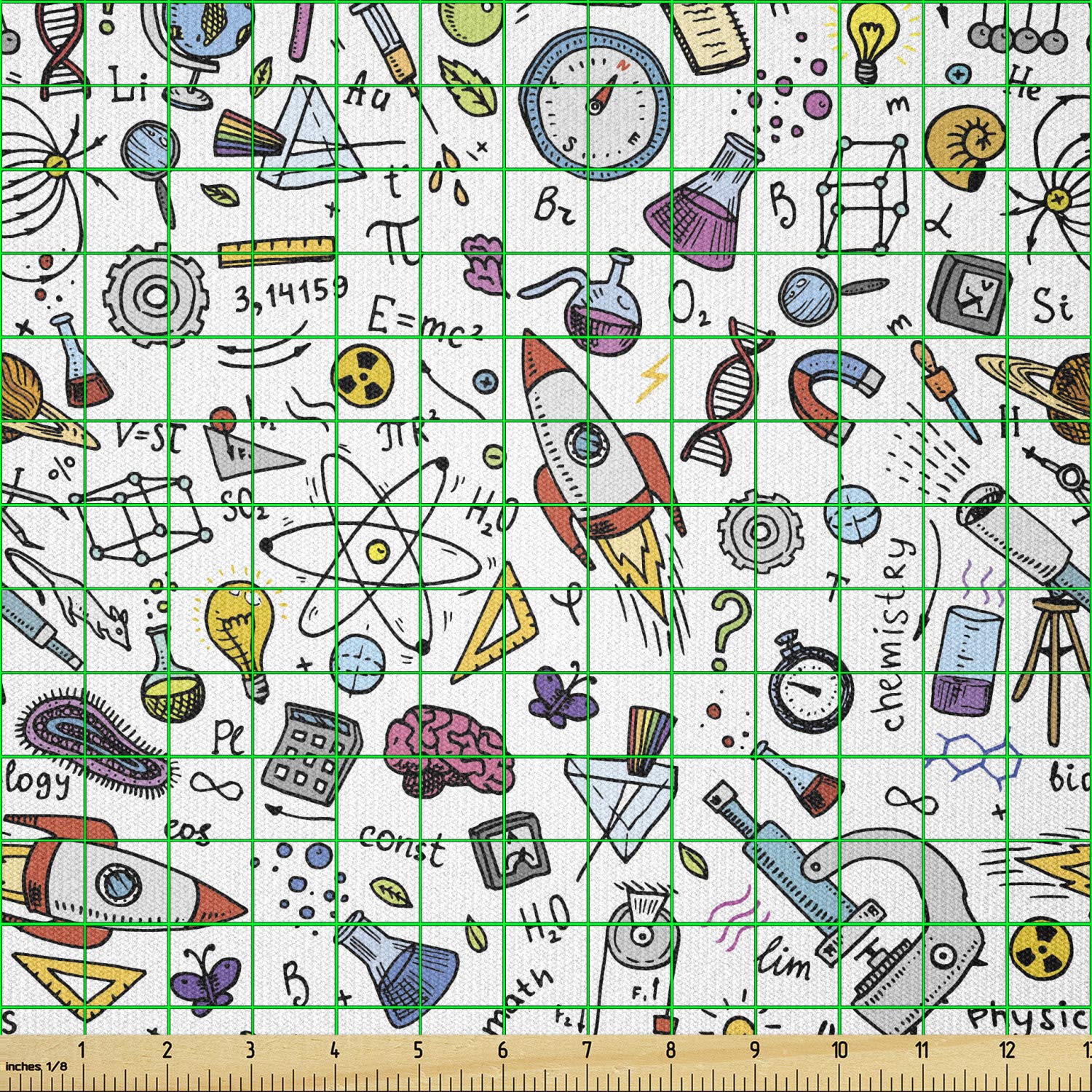 Ambesonne Educational Fabric by The Yard, Science School Pattern Formulas Laboratory Elements Physics Mathematics, Stretch Knit Fabric for Clothing Sewing and Arts Crafts, 1 Yard, White Grey