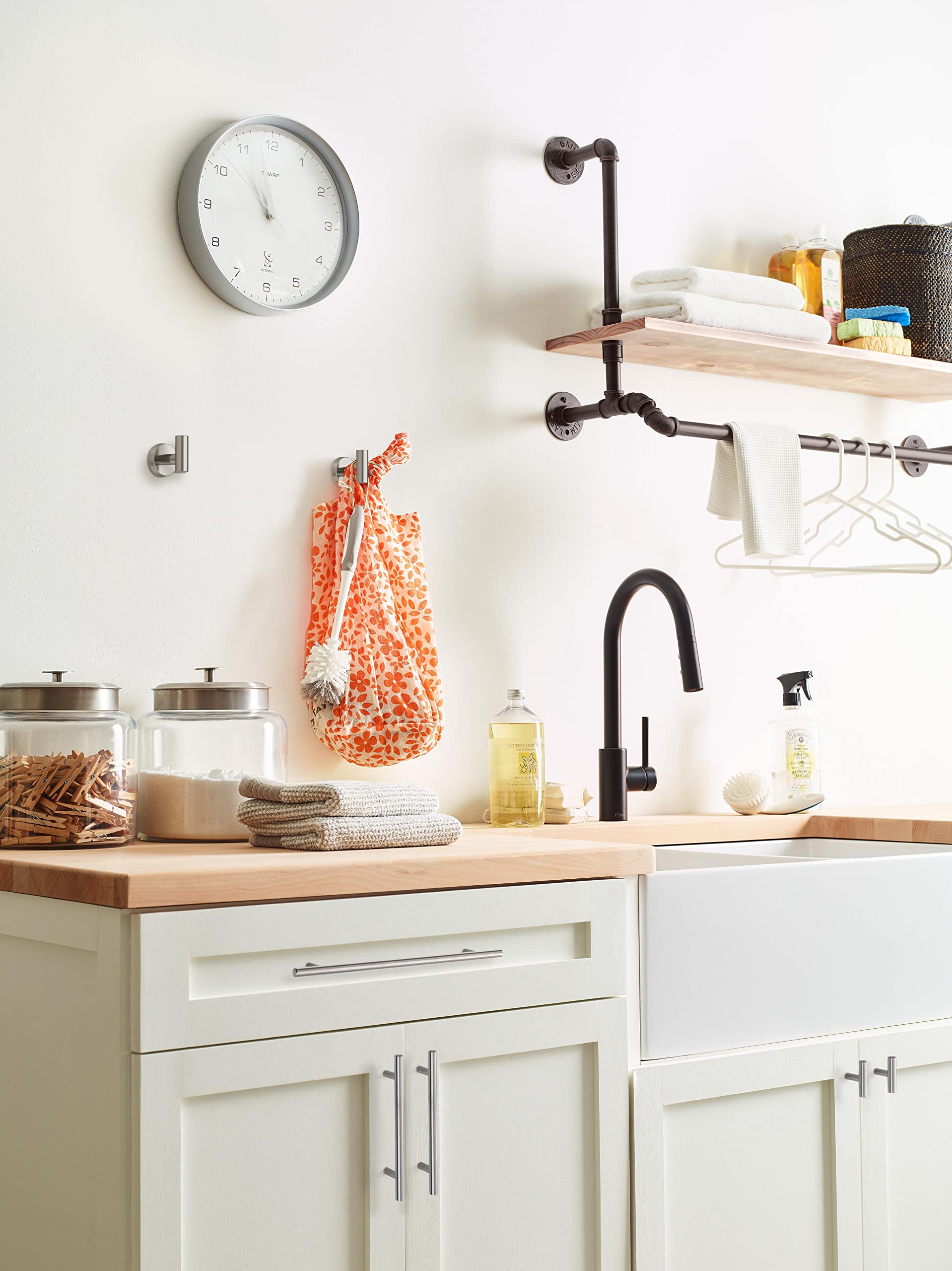 Details: The Amerock BH26542SS Arrondi Single Robe Hook is finished in Stainless Steel. Inspired by modern, minimalist design, Arrondi creates clean sleek lines that lend contemporary simplicity to any bath or powder room. Stainless Steel’s resistance to corrosion and staining, low maintenance and familiar luster make it an ideal material for many applications. Amerock offers a complete line of decorative and functional cabinet hardware, bath hardware, hook and rail and wall plates. Amerock’s award-winning decorative and functional hardware solutions have built the company’s reputation for chic design accessories that inspire homeowners to express their personal style. Available in a variety of finishes and styles, Amerock offers high quality designs at affordable prices. Always Creating. Always Timeless. Always Amerock.