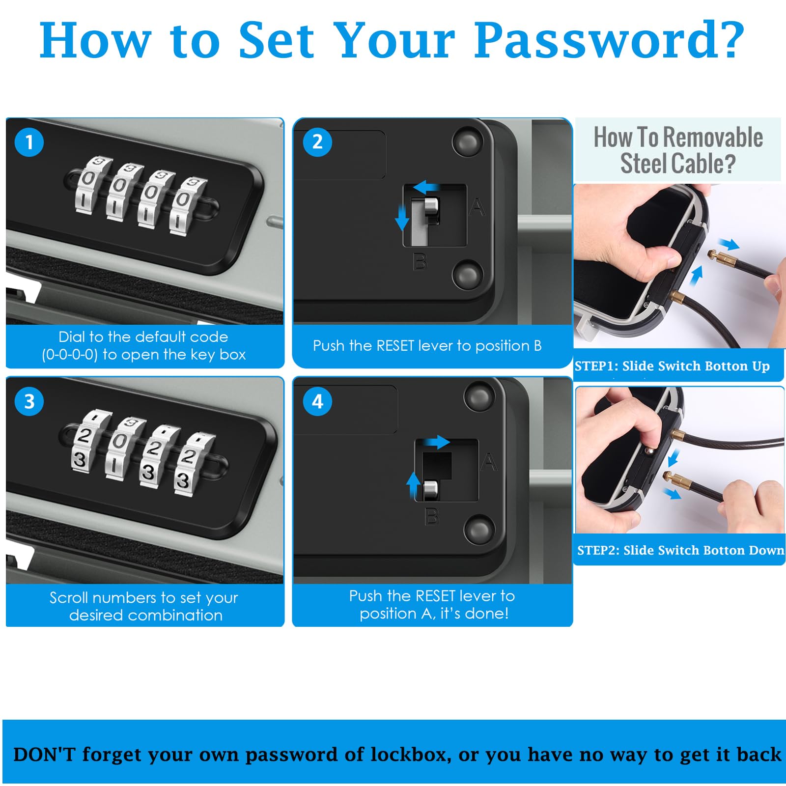 • ใ€๐‡๐ข๐ ๐ก ๐’๐ž๐œ๐ฎ๐ซ๐ข๐ญ๐ฒ ๐’๐š๐Ÿ๐ž ๐๐จ๐ฑใ€‘This lockbox consists of 4-digit password combination, up to 10,000 combinations of passwords, easy to use and change passwords. The default combination is 0-0-0-0, which is easily reset to your own number. Please note that once the password is reset, it is best to take a photo to record it, otherwise there will be no way to open it again.