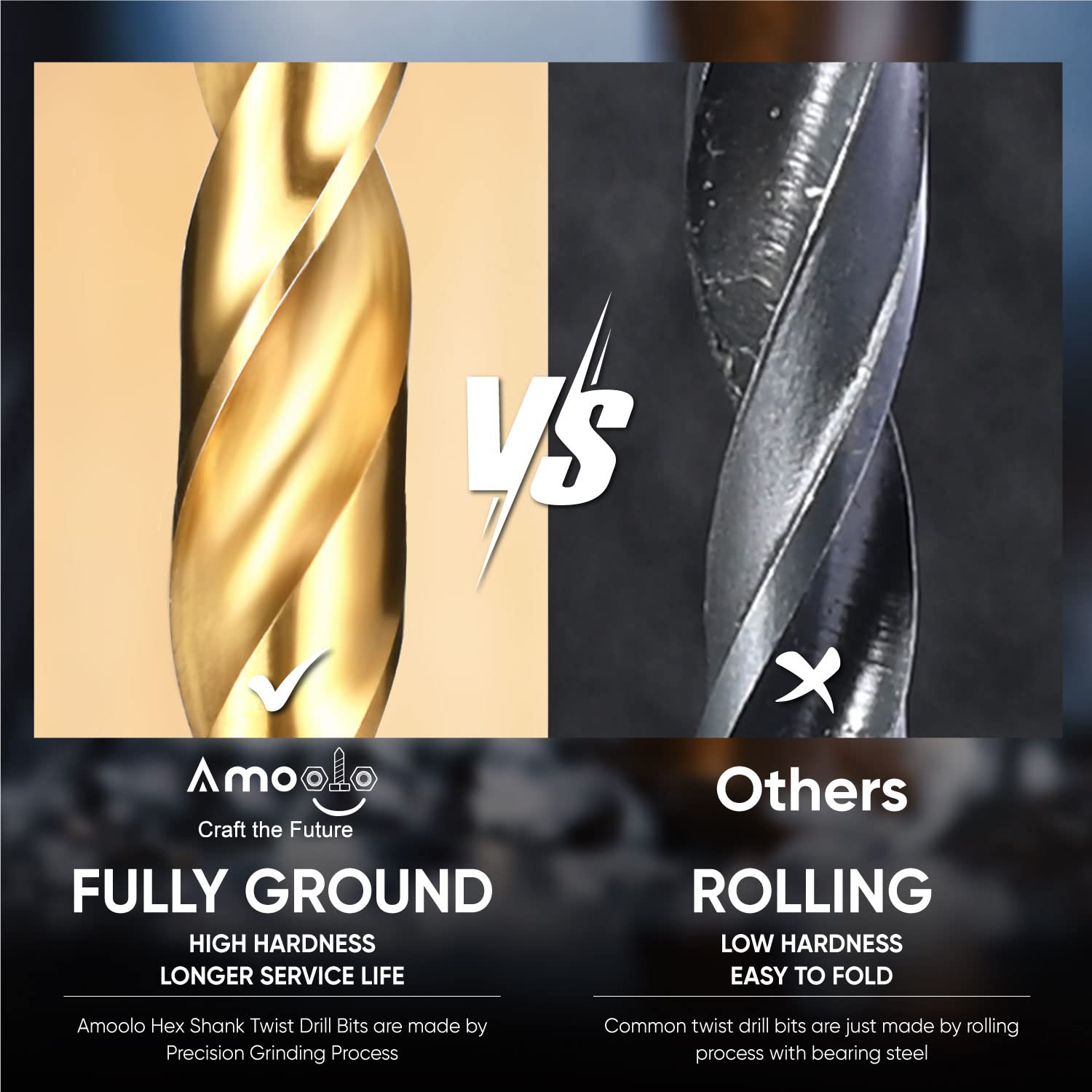 • Upgraded Structure - press in pin connection makes the bit and hex shank an integrated structure to prevent break off during drilling, greatly reduced the risk of drill bit snapped off from the hex drive;