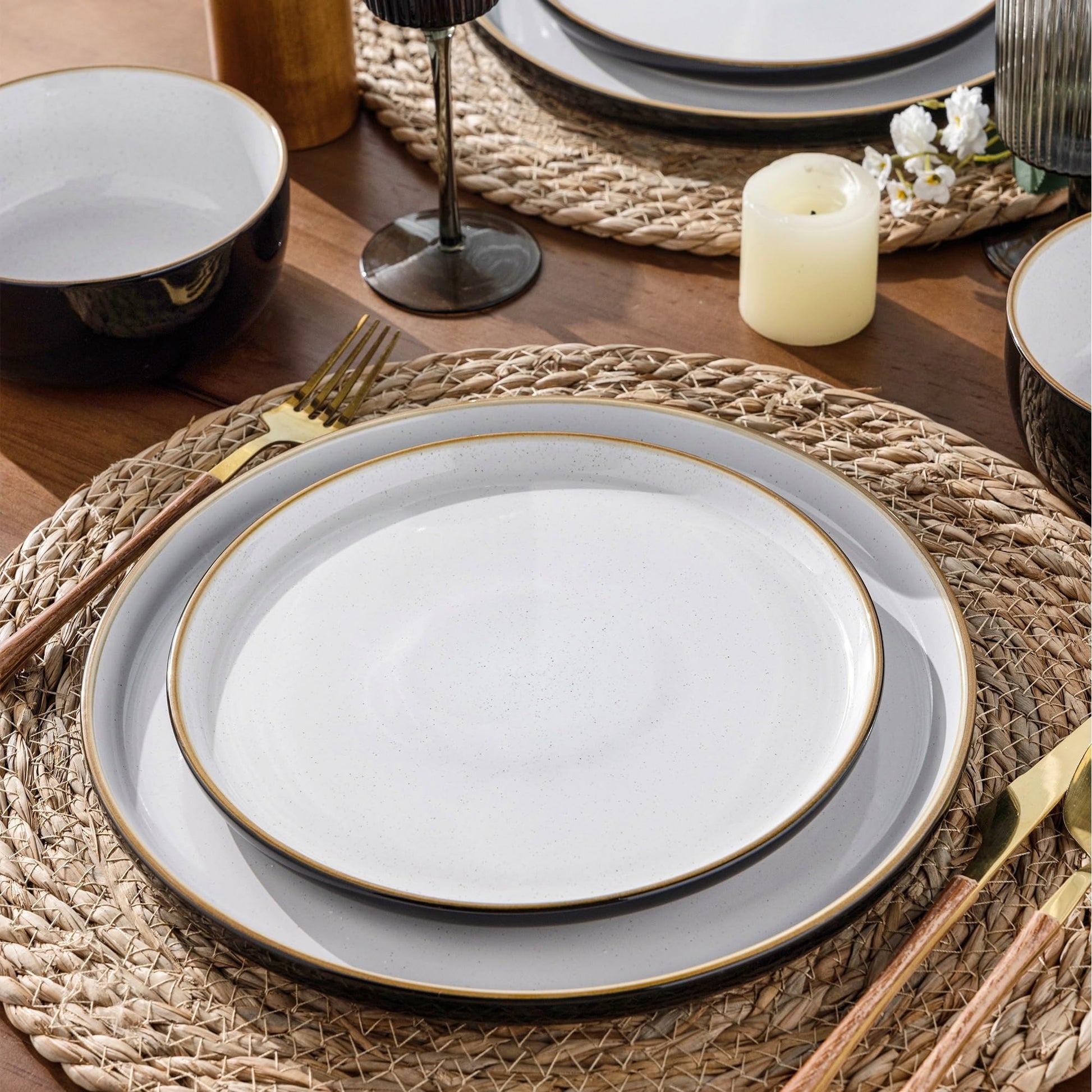 • WHAT'S IN THE BOX: This series 12-piece dinnerware set includes 4Pcs 10.5”Dinner Plates, 4Pcs 8.5”Salad/Dessert Plates, 4Pcs 5.5”(24 OZ) cereal/soup bowls, making it a great set service for 4. Rest assured that every item has been thoroughly inspected to guarantee its intact arrival without breakages