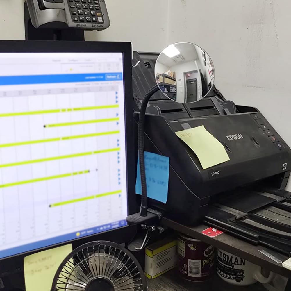 Details: Ampper round convex mirror for personal safety and security cabinet cubicle desk rear view monitors.