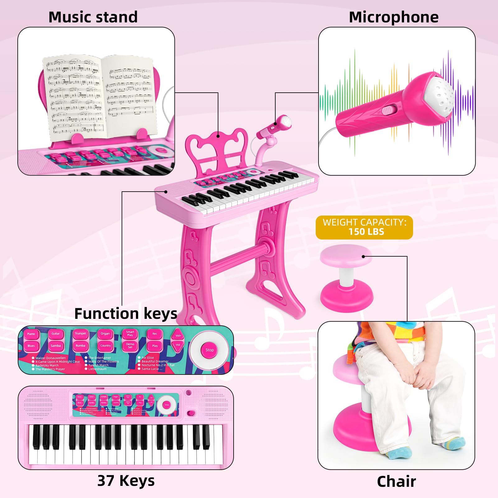 • 【37 Keys Keyboard Toy】--37 keys provide a wide range of notes, helps develop hand-eye coordination and musical skills