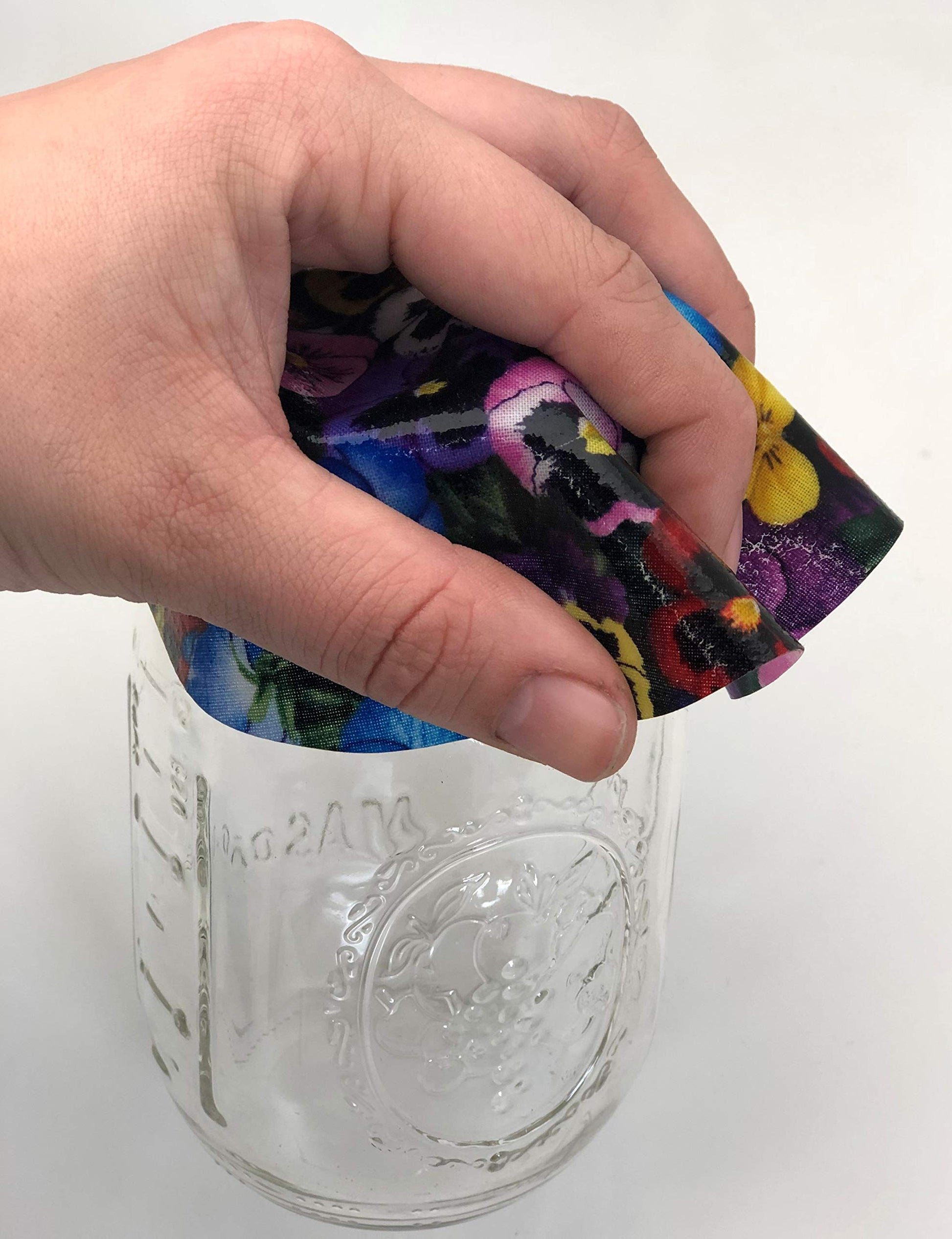 • DECORATIVE NON-SLIP SILICONE: This jar opener is 6.25 inches in diameter. One side features non-slip silicone and the other side features decorative fabric in several patterns and colors