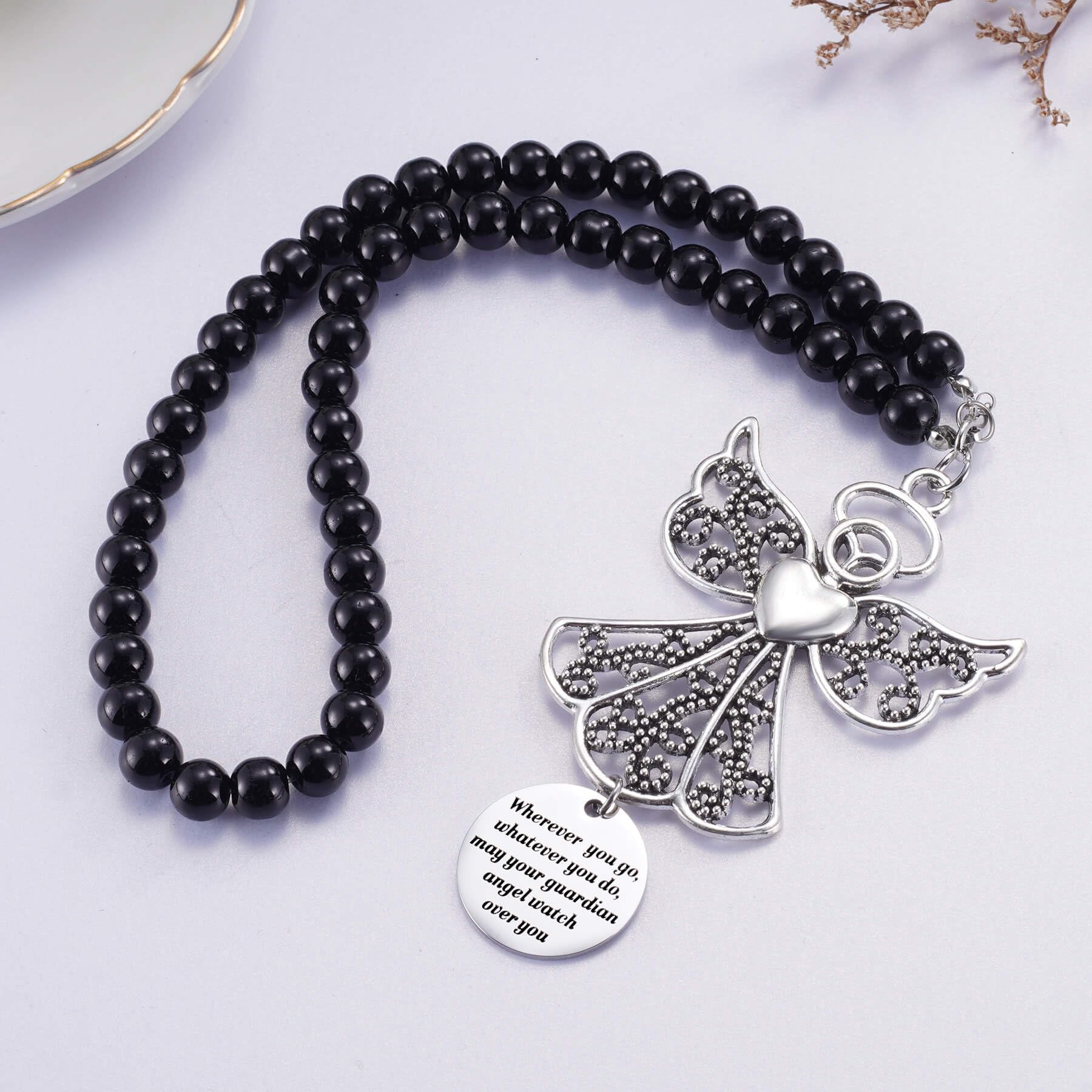 • Rear View Mirror Charm for New Driver - Made with a 67mm x 54mm (2.6'x2.1') antique silver tone angel pendant and a 25mm stainless steel 'Wherever you go, whatever you do, may your guardian angel watch over you' charm, hanging on a 8 inch chain with lobster claw closure. Can be used as a rear view mirror car charm or ornament.