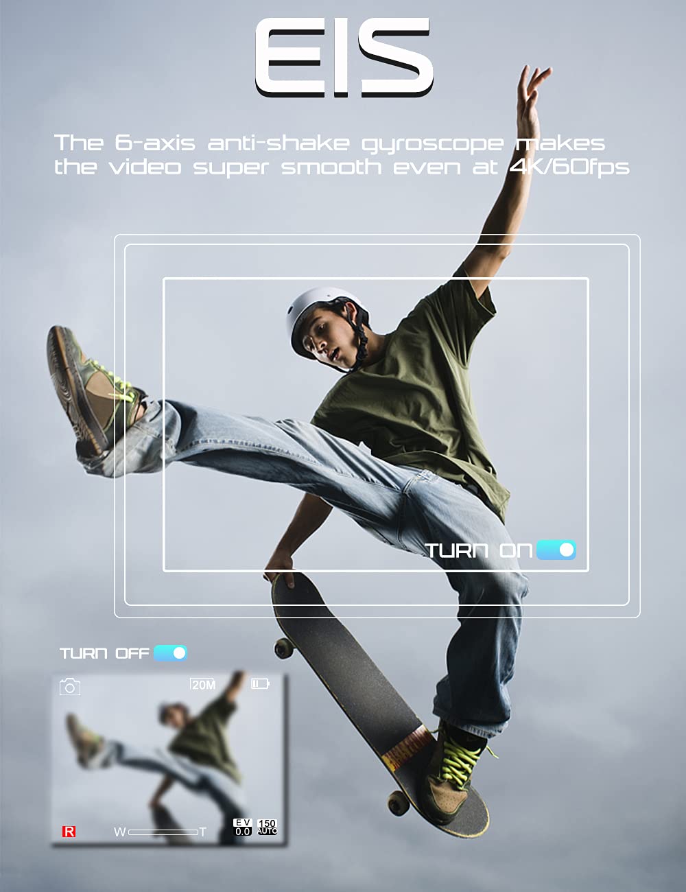 • 【Native 4K/60fps EIS Camera】:Apexcam X60Pro action cam features 4K/60fps video and 20mp images;Built-in Electronic Image Stabilization (EIS) with 6-axis gyroscope, distortion calibration function delivers fairly rich colors and flucid motions,capture every wonders in the world in a fantastic resolution.