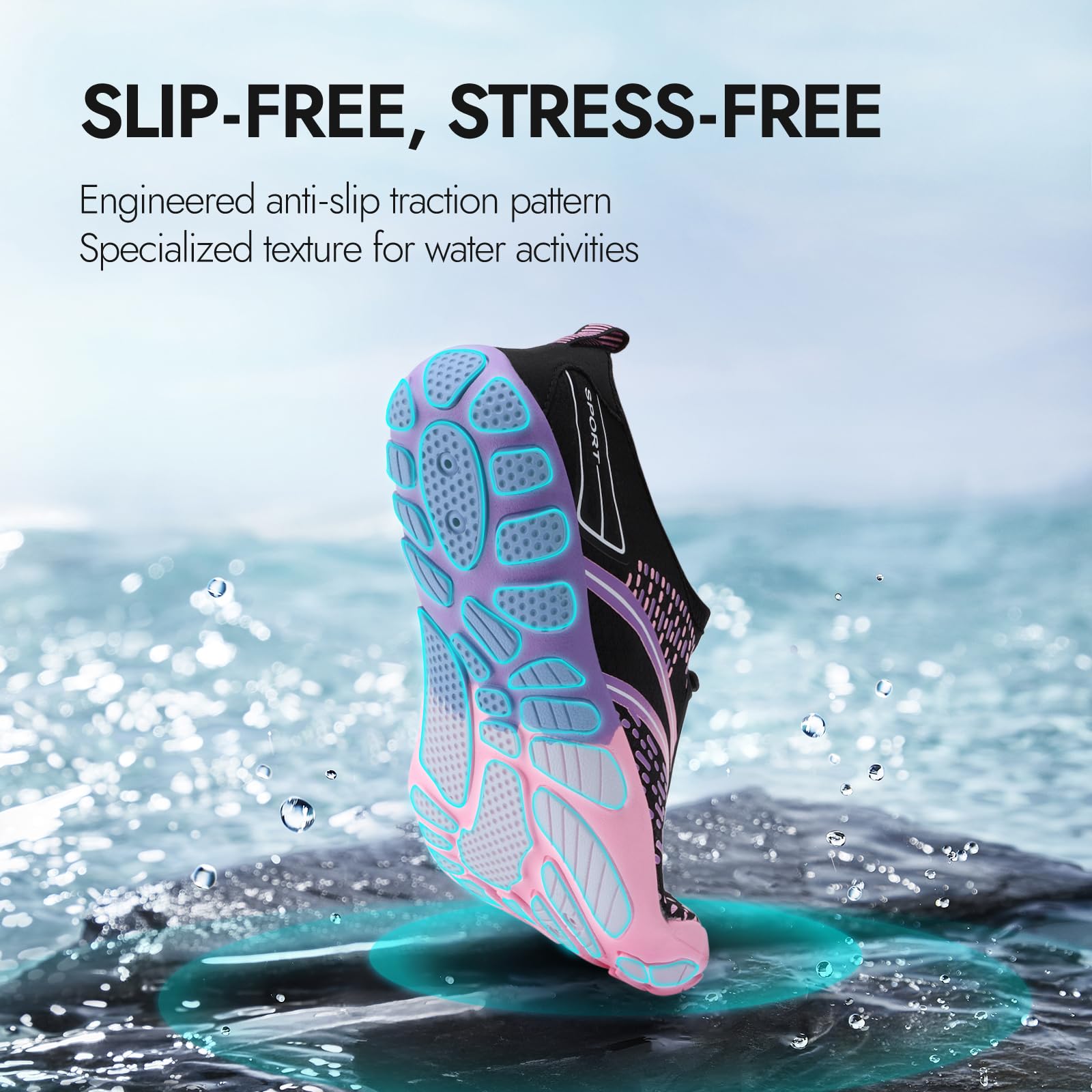 • Flexible Twist and Quick Dry: Our swimming aqua shoes are light weight and easily carry, no matter you go to river, sea, lake and ocean to play, you can take our aqua shoes with you. The unique 8 drainage hole design can quickly discharge water and prevent sand from entering