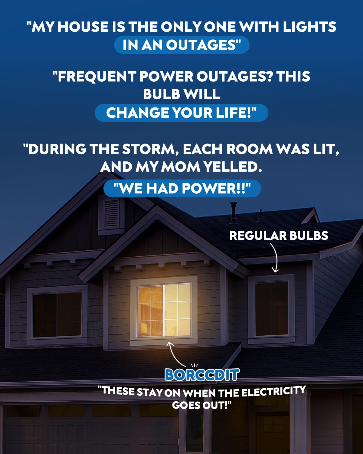 • 2025 Technology Breakthrough: BoRccdit Keeplit power outage light bulbs solves common issues like "failure to switch on or off" with advanced technology, ensuring smooth operation even alongside regular bulbs. Whether at home or during an outage, you can count on consistent performance without sudden failures. Designed for ease of use, it’s safe and simple for everyone in the family—seniors and children alike can operate it with confidence