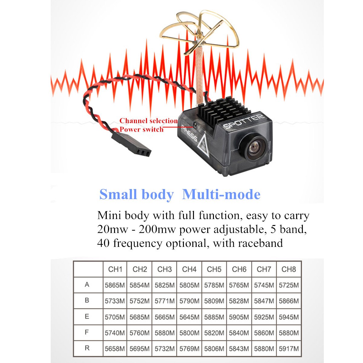 • 【EXTENSIVE ADAPTATION】The video transmitter can adjust the power from 20MW to 200MW, operate in 40 different channels, and can be used with the most popular FPV goggles in the market (such as FatShark Google).