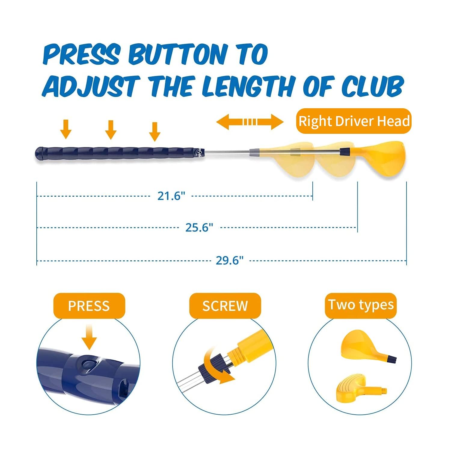• Tips And Safety Warning: Children may get injured and/or have accidents when playing sports, supervision is recommended when using this toy. Safety is our top priority. This golf set is designed with kids’ safety in mind and is 100% safe when used properly. Also, avoid clubheads from hitting hard things.