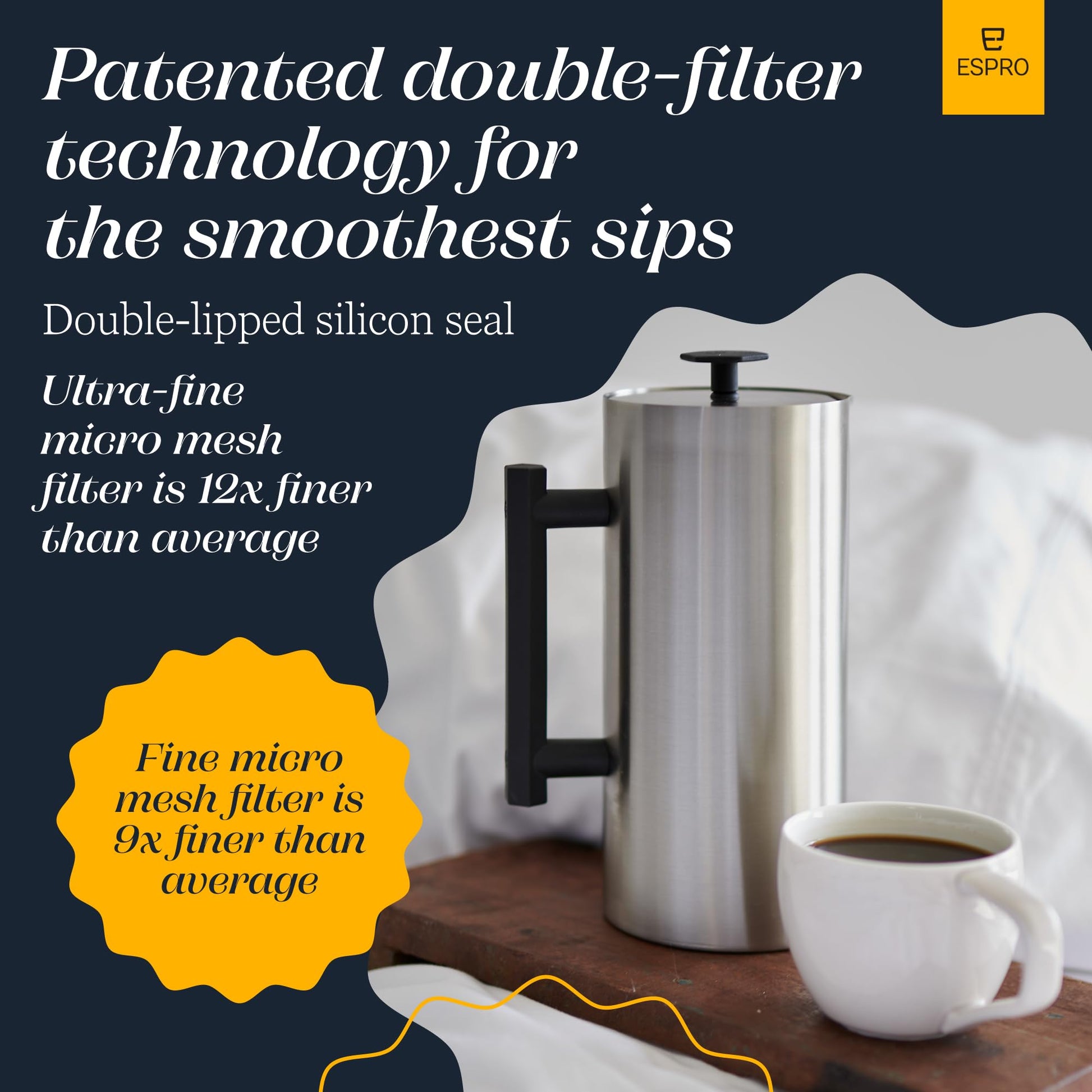 • IDEAL FOR GIFTING: ESPRO is the ultimate French press, crafted with stainless steel and featuring a double filter for the perfect coffee experience. It's a gift that will impress any coffee enthusiast on any occasion.