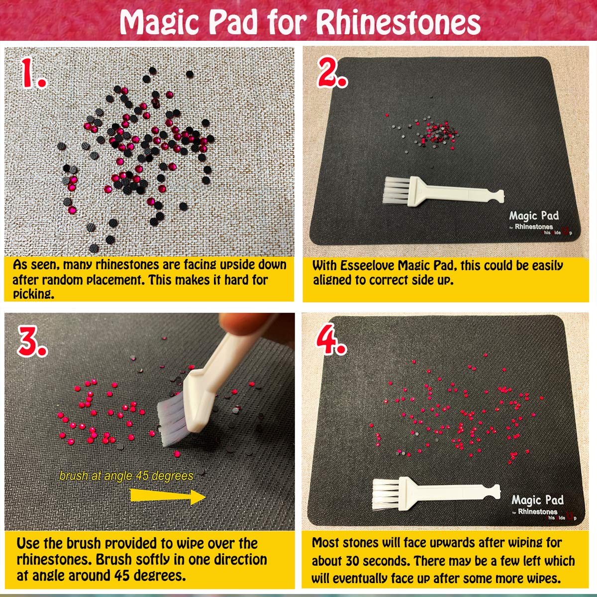 • EXCLUSIVE MAGIC PAD & SPECIAL BRUSH for Picking Up Rhinestones - This Tools Set includes a Magic Pad for Rhinestones and a Soft Brush which helps to turn most of the Gems face up in just 40 seconds. Much easier for a Wax Gem Picker to pick up the gems efficiently.