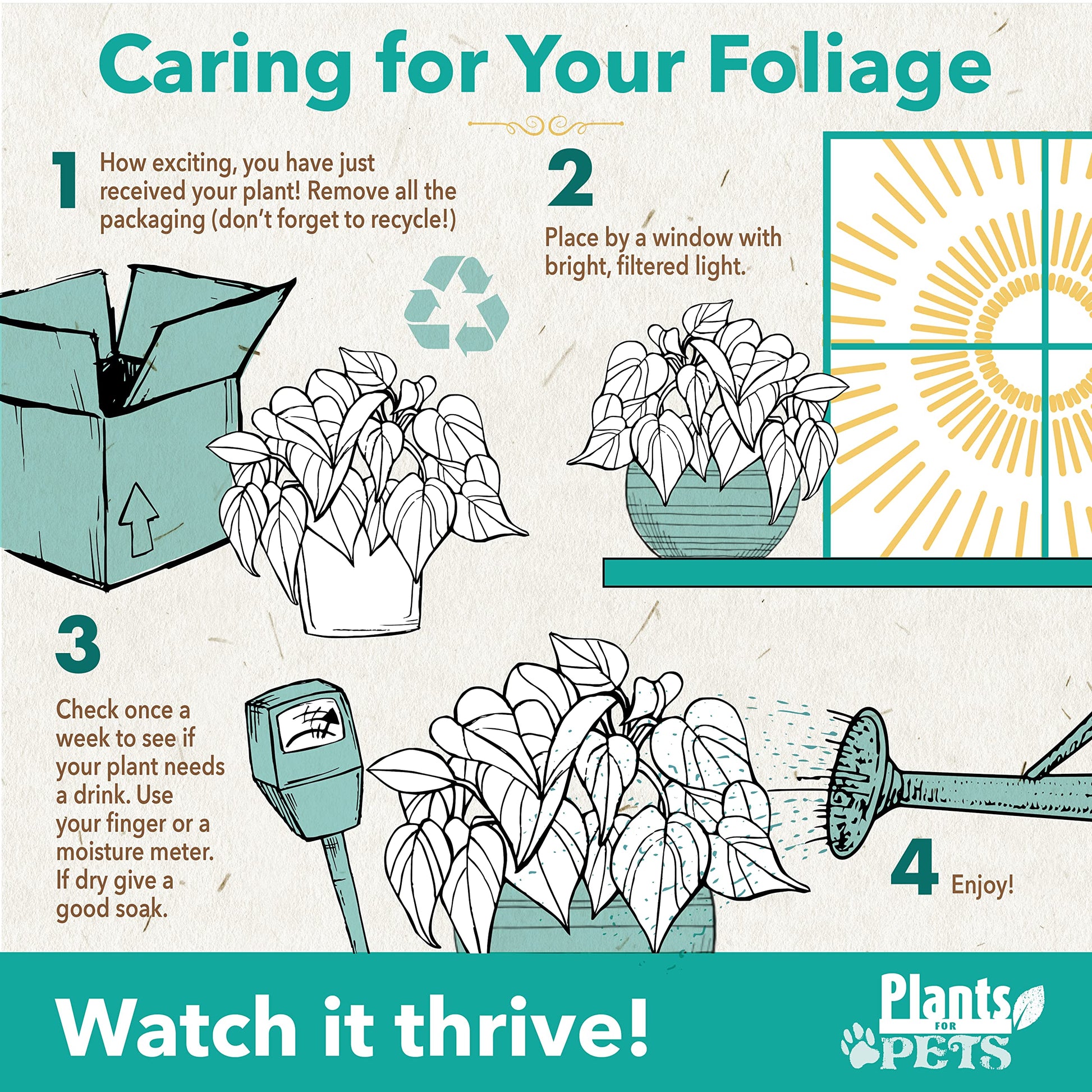 Details: The Essential House Plant Collection features 4 hand selected plants, fully rooted in 4” plastic planters. The plants in your 4-pack will depend on availability and range in height, approximately 8 to 11 inches tall. All of the plants included in this set have the potential to grow much larger than the size they are upon arrival. Many of the plants included in your pack will tolerate low light conditions inside your home and are considered low-maintenance plants that keep growing with minimal care.Grow some of your new plants in a cute plant pot together with indoor potting soil or plant them in natural, decorative planters with soil for indoor plants and arrange on an indoor plant stand. Decorate your home with these plants, terrarium plants, small plants, and other plants in our store like a spider plant, aloe vera, money tree, venus fly trap, succulent plants, cactus plants, a jade plant, fiddle leaf fig ficus, bromeliads, large succulents, and more. The Essential House Plant Collection also pairs well with other popular house plants like a zz plant, monstera plant, peace lily, bamboo plant, prayer plant, hoya plant, bird of paradise plant, chinese money plant, orchid plant, coffee plant, desert rose, hoya plant, areca palm, ponytail palm, and parlor palm. PLANT TOXICITY WARNING: While all Plants for Pets purchases help to support local animal shelters, many of the plants featured in the Essential House Plant Collection are toxic to dogs and cats. We encourage you to display your new plants in a location that your beloved pets cannot access.