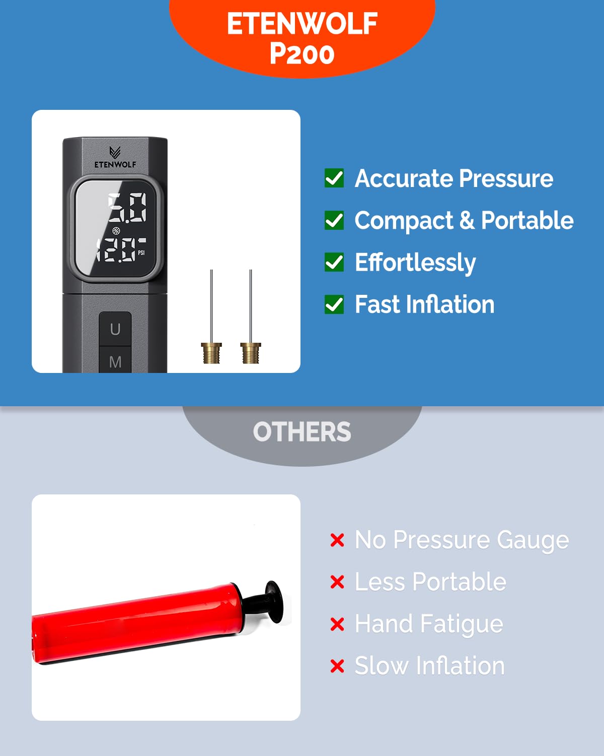 ETENWOLF P200 Electric Ball Pump 2000mAh Sports Air Pump with Digital Pressure Gauge for Basketball Soccer Volleyball (Black)