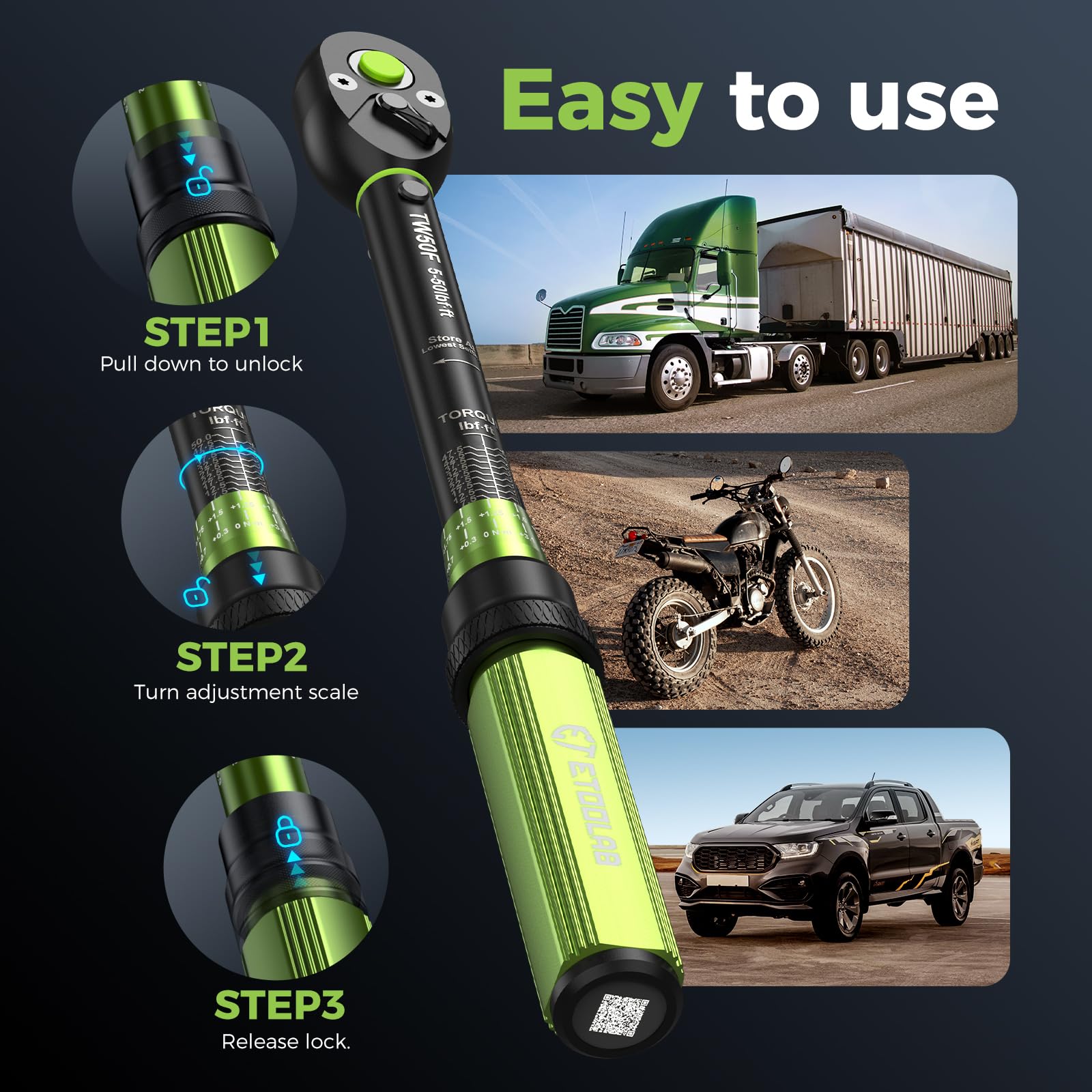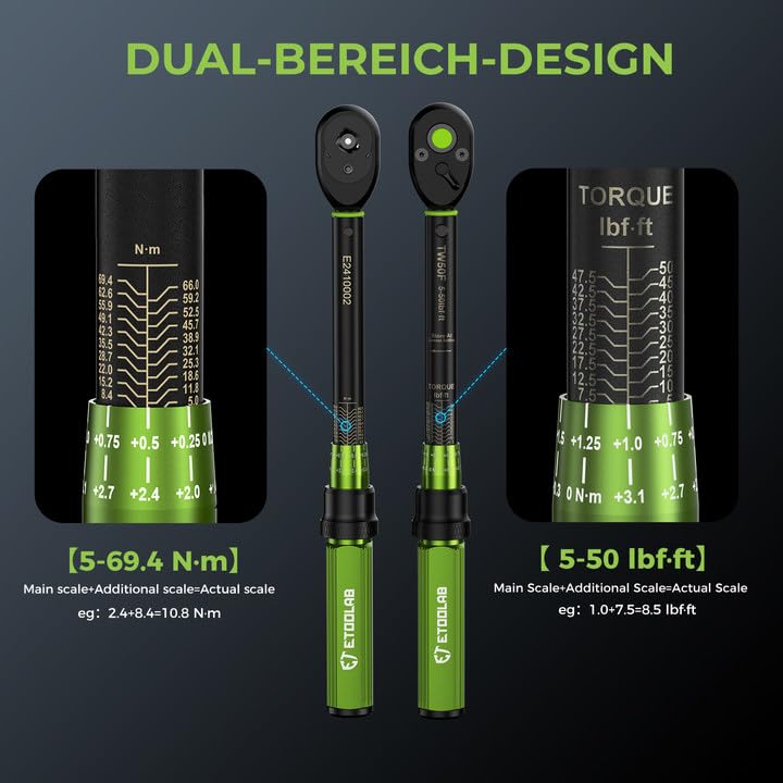 • ๐Ÿ”งใ€๐Œ๐ข๐ฅ๐ข๐ญ๐š๐ซ๐ฒ-๐ ๐ซ๐š๐๐ž ๐’๐ญ๐ž๐ž๐ฅใ€‘ETOOLAB torque wrench utilizes military-grade steel as its base material, coupled with professional surface rust protection methods tailored to usage habits. While ensuring user comfort, it enhances product strength, wear resistance, and rust resistance. offers a more comfortable experience and a longer lifespan!