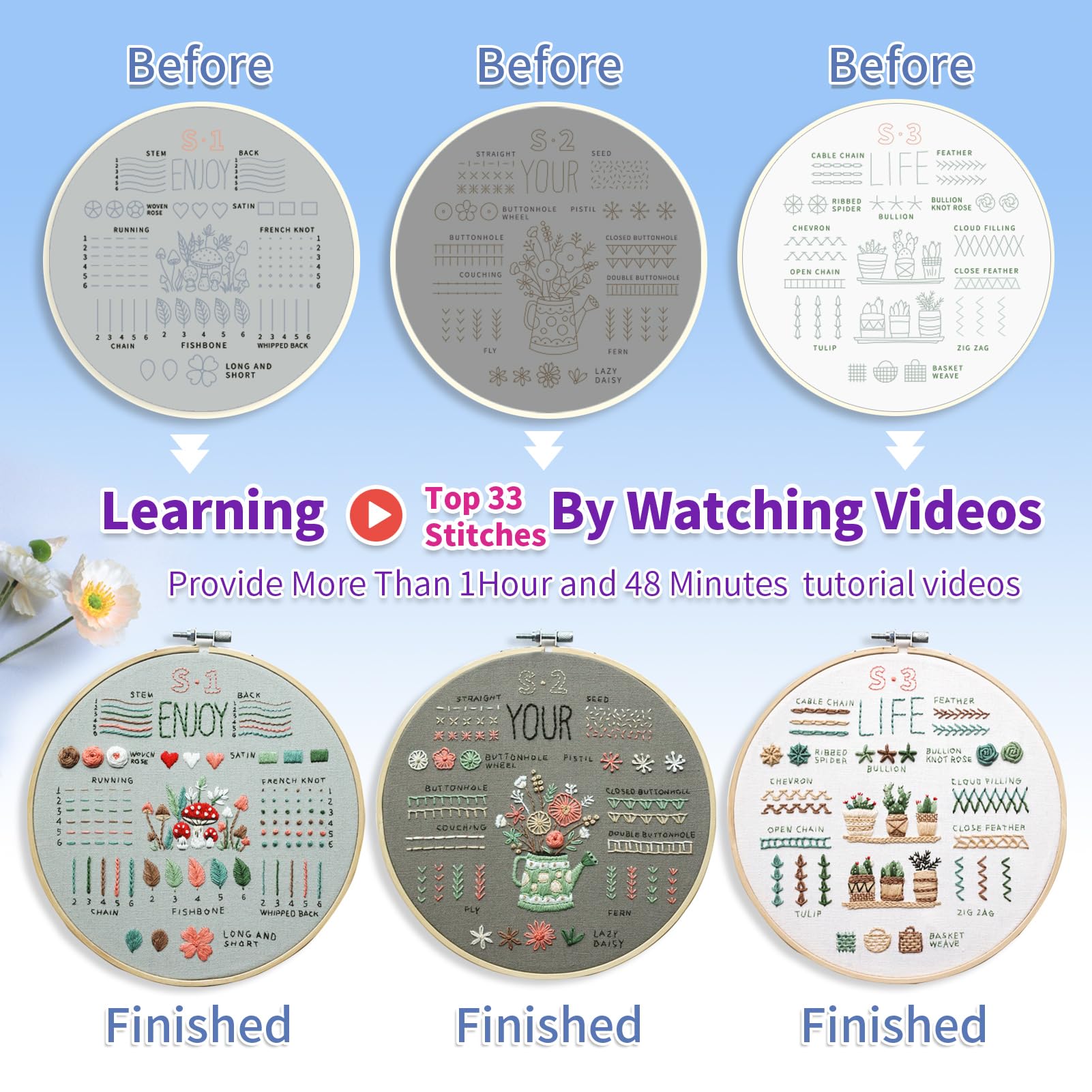 • BEGINNER-FRIENDLY: Includes 33 essential stitch diagrams + HD video tutorials; Master everything from backstitch to French knots with step-by-step guidance, perfect for absolute beginners.