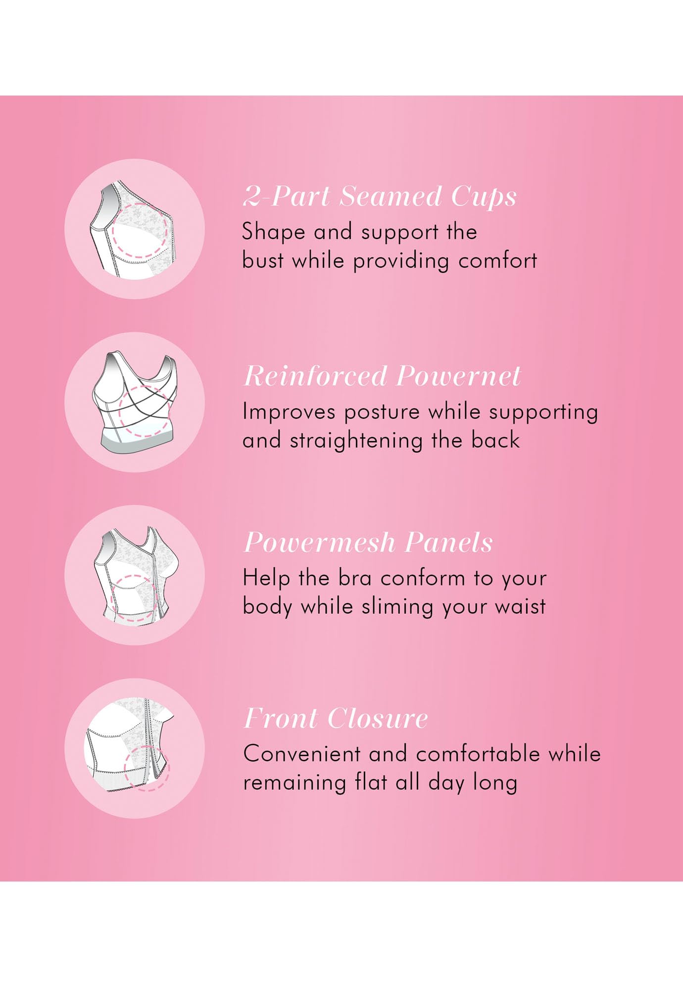 • POSTURE SUPPORT. This women's full-figure bra is designed with supportive cups, power mesh waist-slimming panels and a crisscross powernet design at the back to help support your back, smooth your waist and correct your posture.