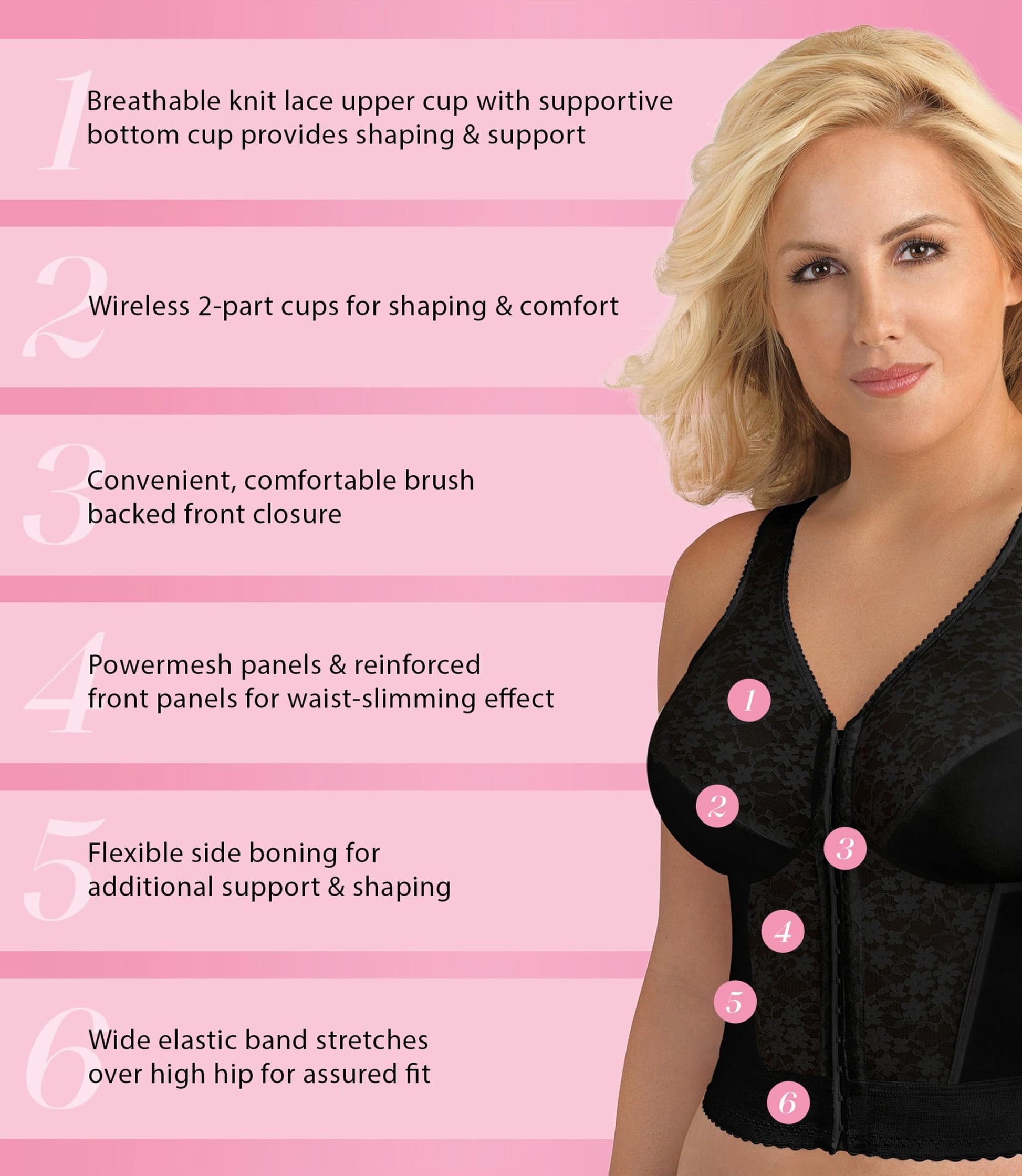 Exquisite Form womens Fully Front Close Longline Lace Posture Bra, Black, 40DD US