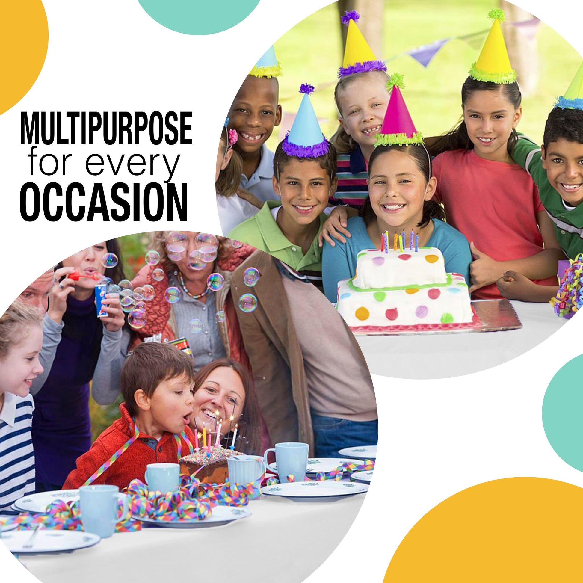 • DISPOSABLE AND PORTABLE: With This Convenient Party In A Box, You'll Have No Problem Bringing Disposable Table Cloths To Any Location. With A Cutter Attached To The Box, You Can Easily Cut The White Tablecloth Roll To Any Size You Need.