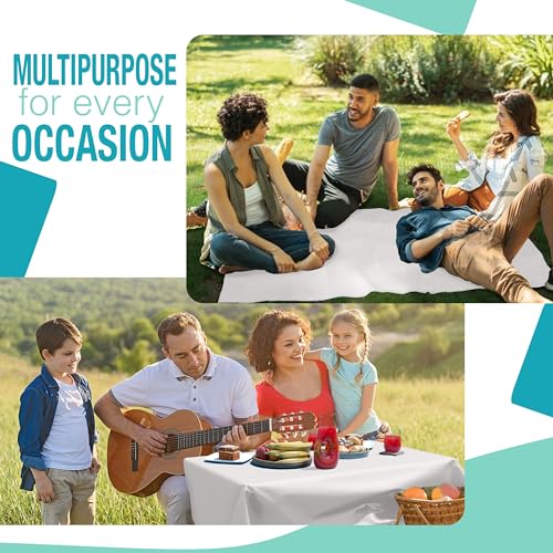 • MULTIPURPOSE - The white table cloths for parties comes in handy for so many uses and events white tablecloths for rectangle tables - party table cover - christmas tablecloth - halloween tablecloth - white plastic tablecloth - white table cloth disposable