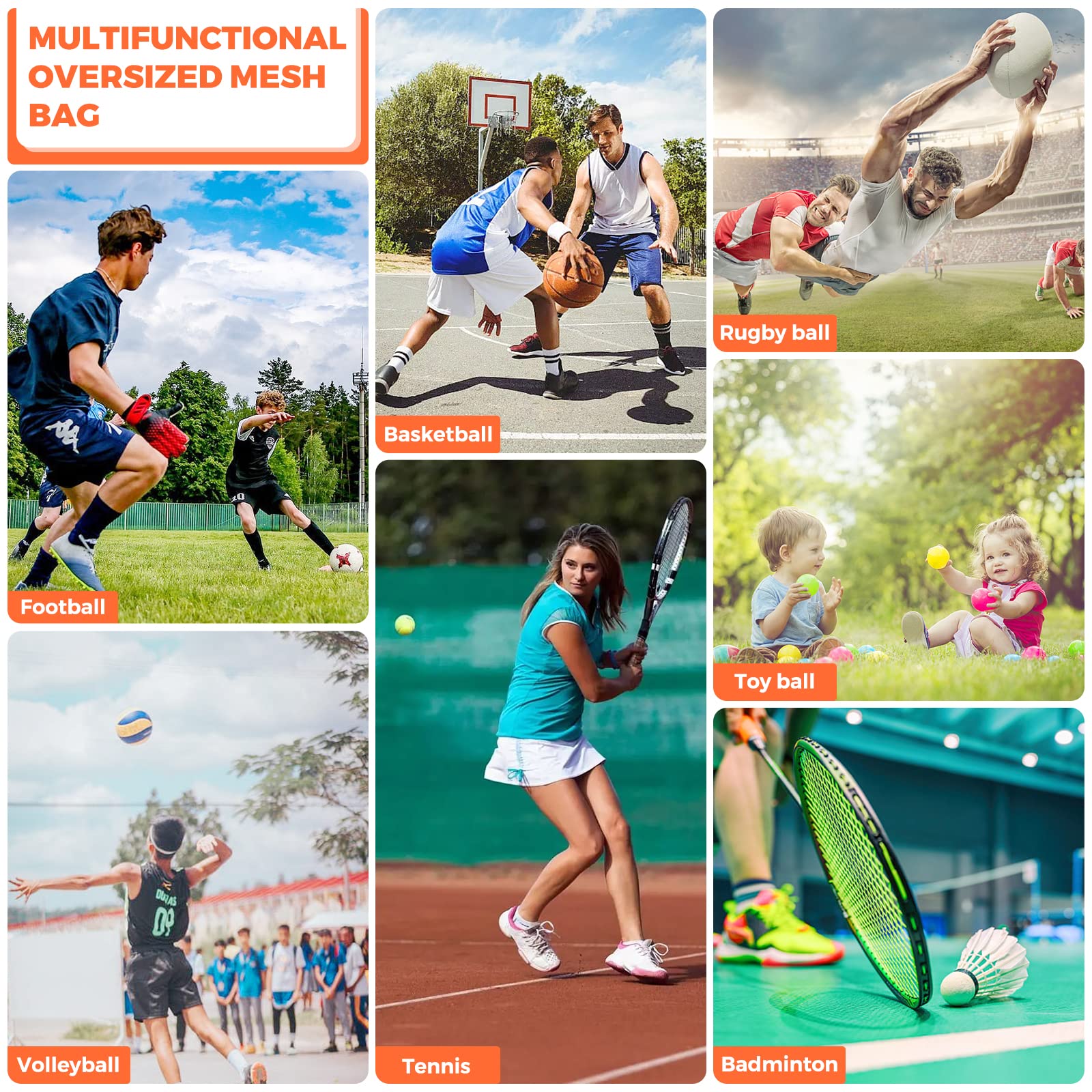 • 【✅Large Mesh Bag】Measured at 41.7*30 inch, Can hold 12 soccer balls (size 5), 12 footballs, 12 rugby balls or 8 basketballs (official size).