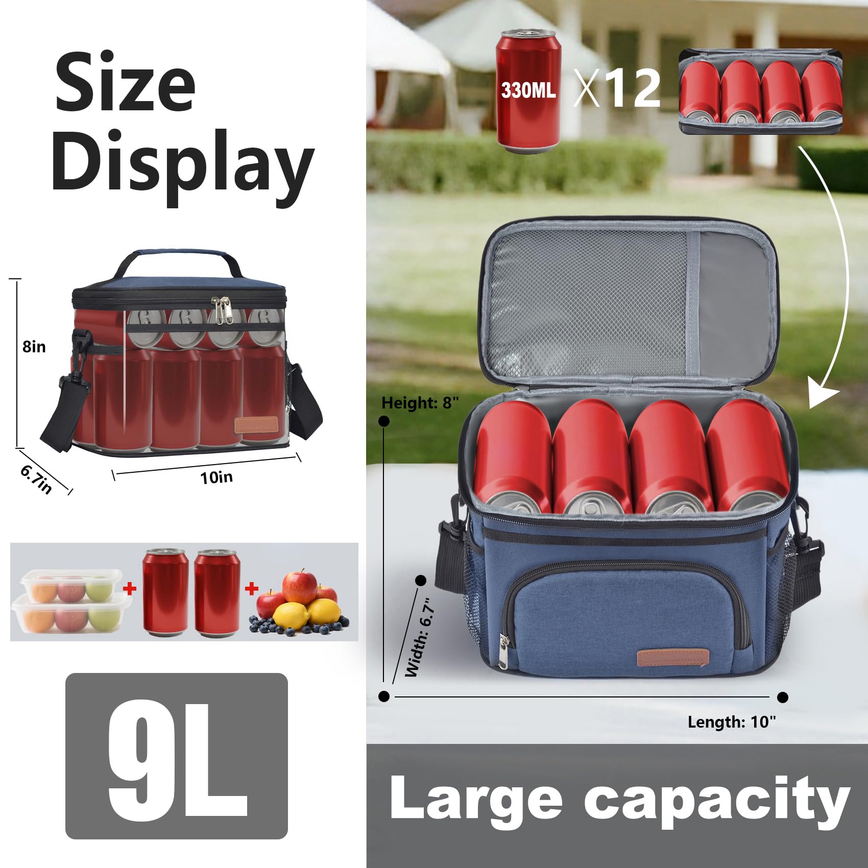 ExtraCharm Insulated Lunch Bag for Women/Men - Reusable Lunch Box for Office Picnic Hiking Beach - Leakproof Cooler Tote Bag Organizer with Adjustable Shoulder Strap for Adults - Blue