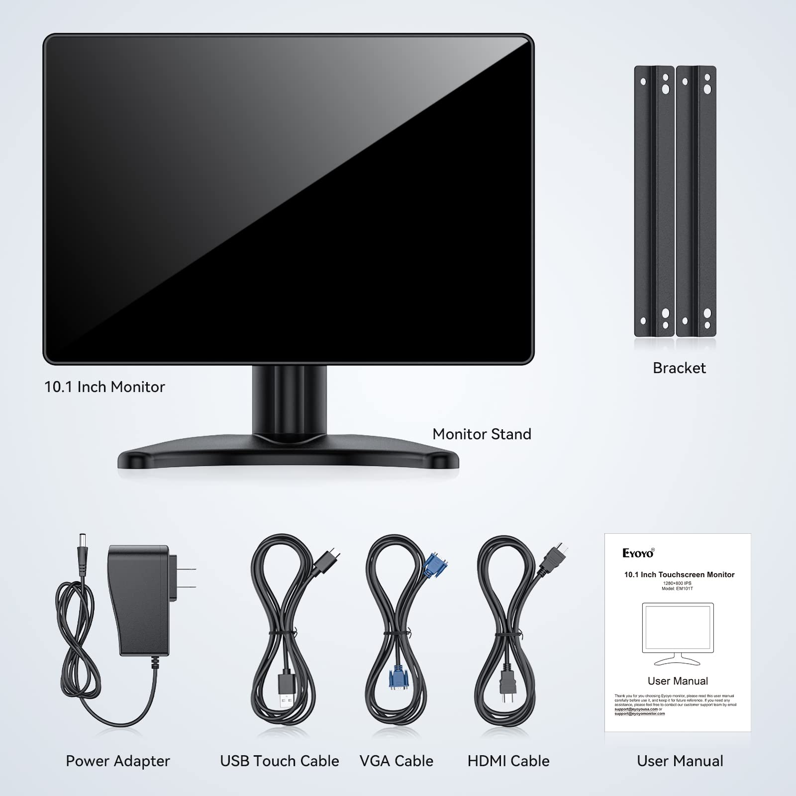 Eyoyo 10 Inch Touchscreen Monitor, Raspi Touch Screen, Small VGA AV HDMI Monitor, Portable IPS Display for CCTV DVD PC Laptop POS Systems with Speakers